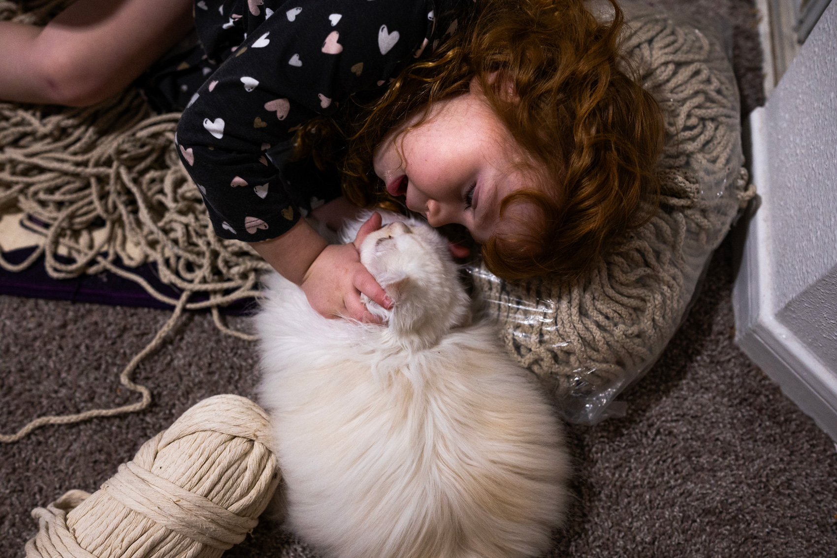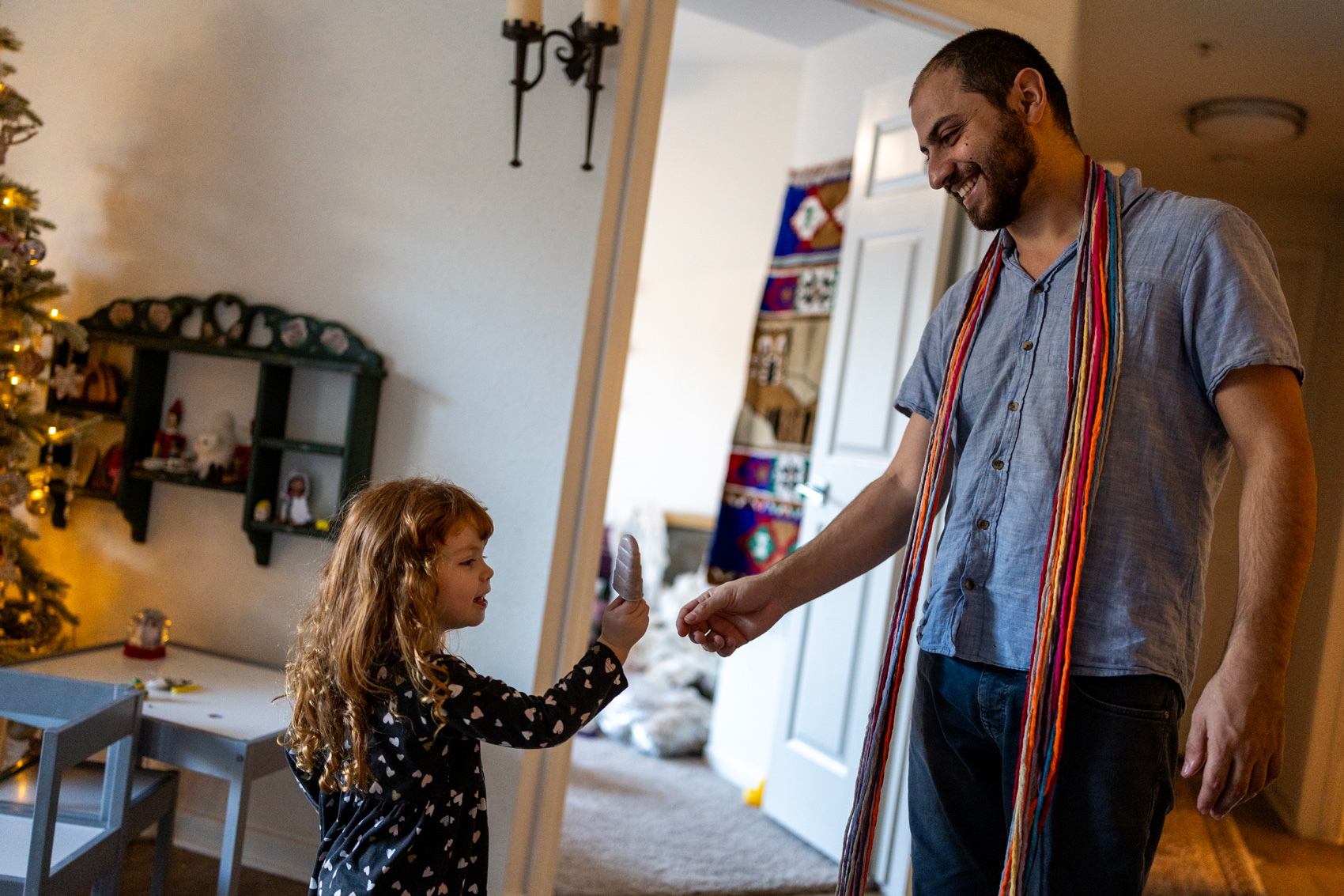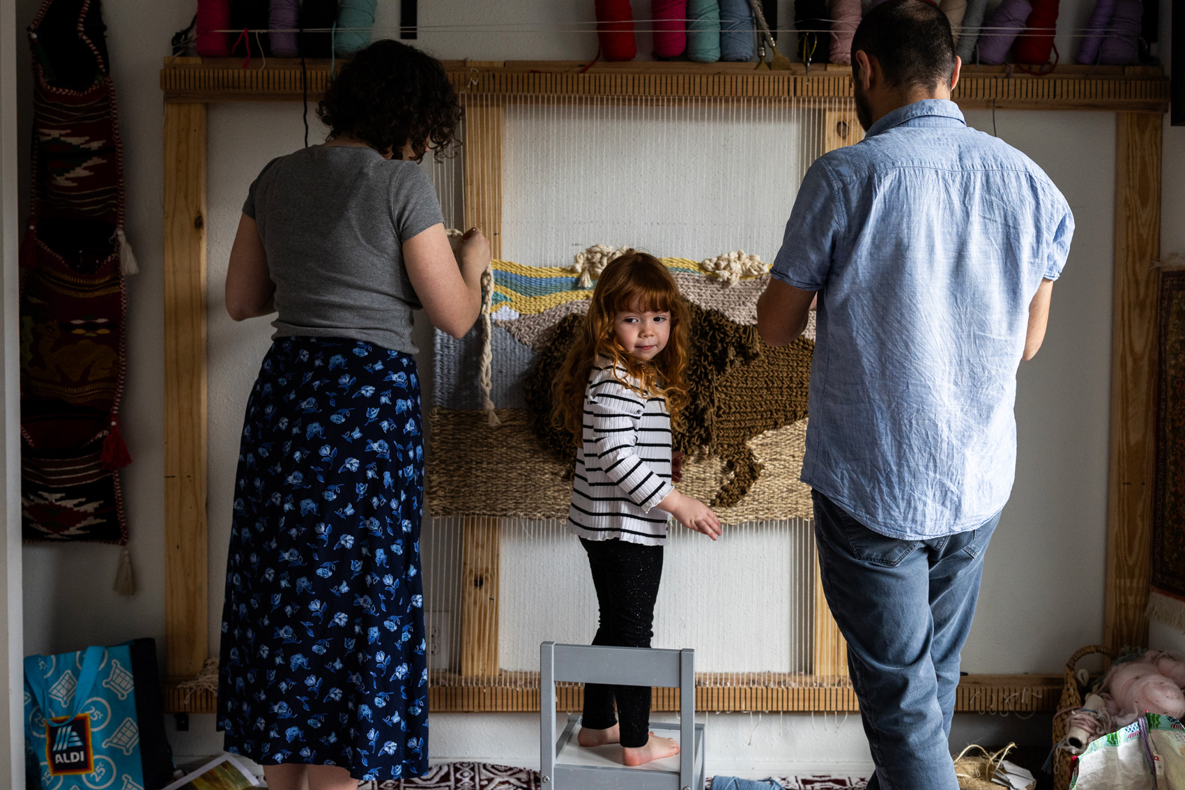Alyssa Young and Mahmoud Koseyaem met in Dubai while Young was traveling with her mother. Koseyaem feel for her after he challenged Young, who is also a weaver, to jump on the loom. The couple had their child Mila Rose, 5, in Dubai, moved to Turkey short after to be closer to his brother and finally settled in Houston to be close to Young’s family. (Antranik Tavitian / Houston Landing)