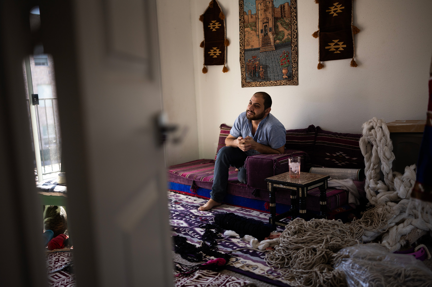 Koseyaem spend anywhere from 8 to 14 hours a day weaving to prepare for the many markets he sells at. His wife Alyssa Young also maintains the couple’s Etsy page where they sell rugs, Aleppo soup and antiques. (Antranik Tavitian / Houston Landing)