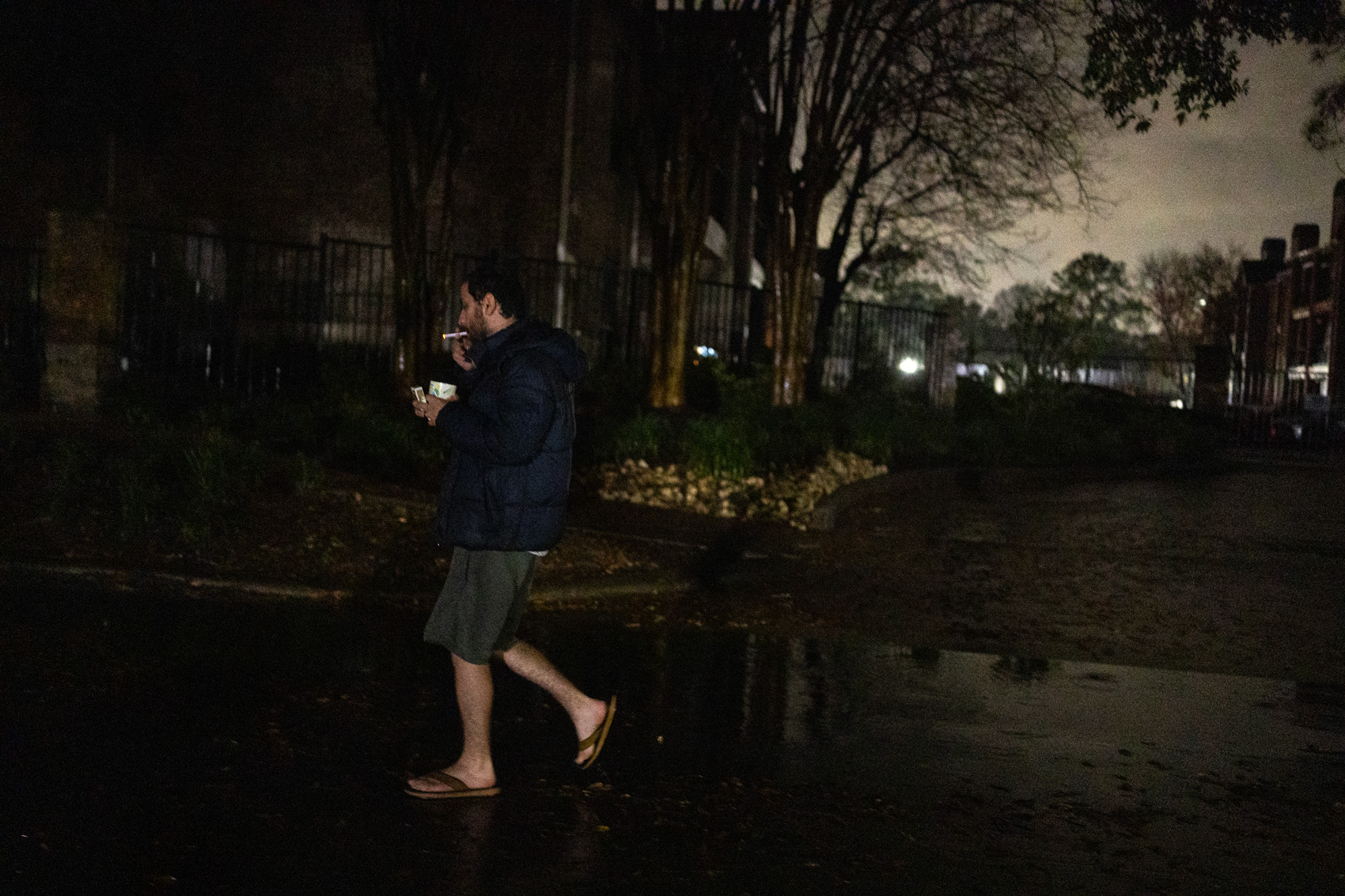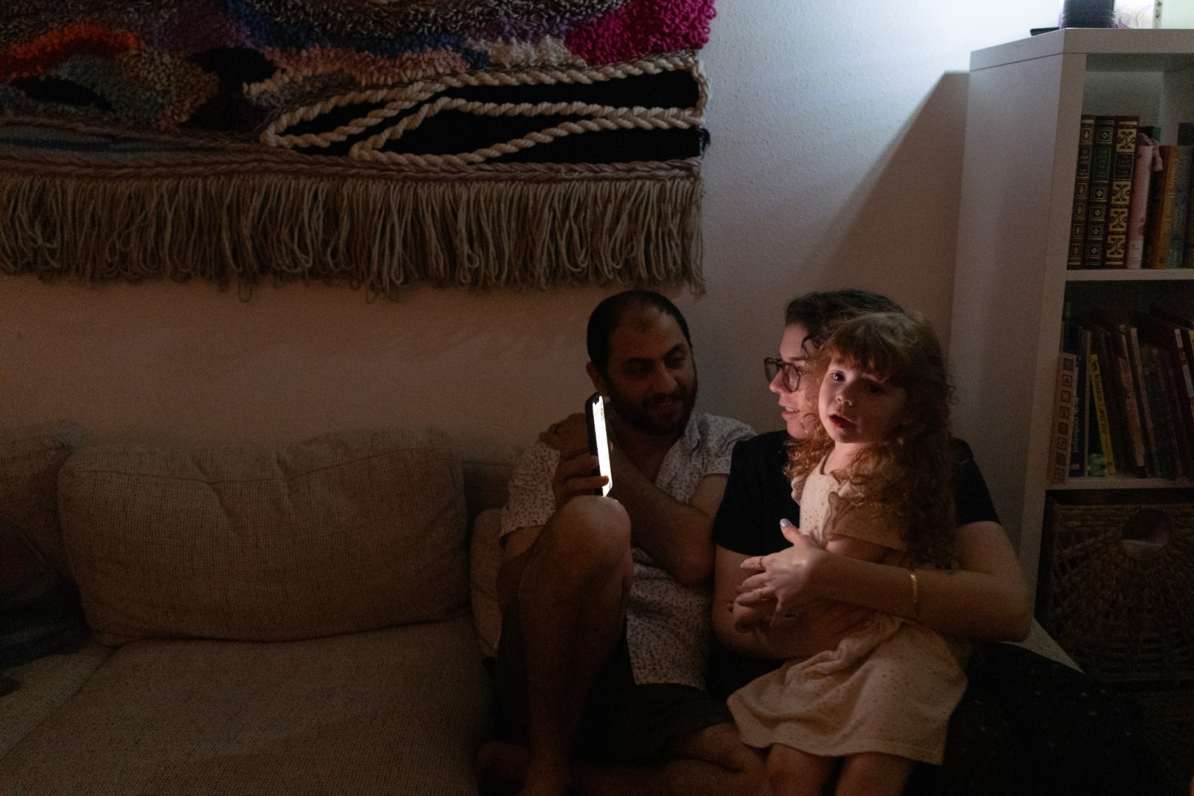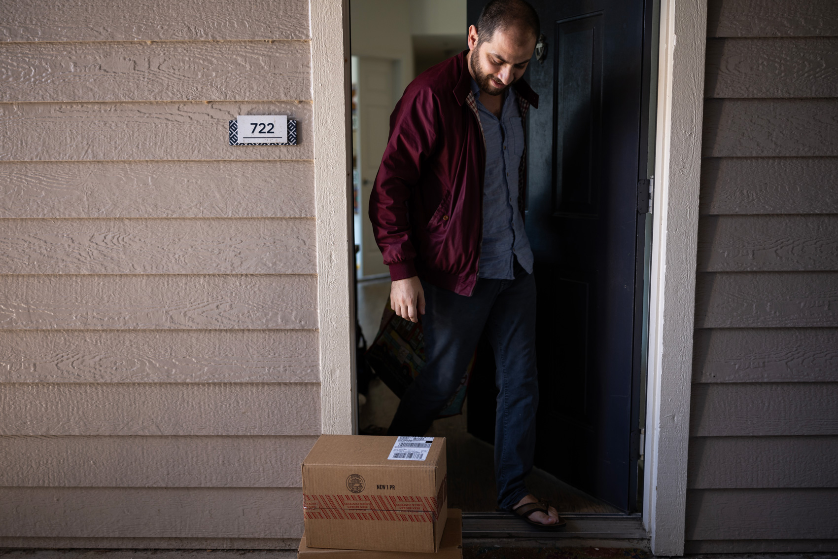 As Mahmoud Khsyaem was finishing making tea to wash down their meal, a storm rolled through and cut the power in their apartment building for hours. “Now we’re a real Syrian family,” Koseyaem said, referring to the regular blackouts in his home country of Syria. Later in the night, Koseyaem got a FaceTime call from his father Abdulkadr Mahmoud Kysyaem who lives in Aleppo with the rest of Mahmoud’s family. The pair spoke for nearly an hour and ended with his father wishing him Eid Mubarak. (Antranik Tavitian / Houston Landing)