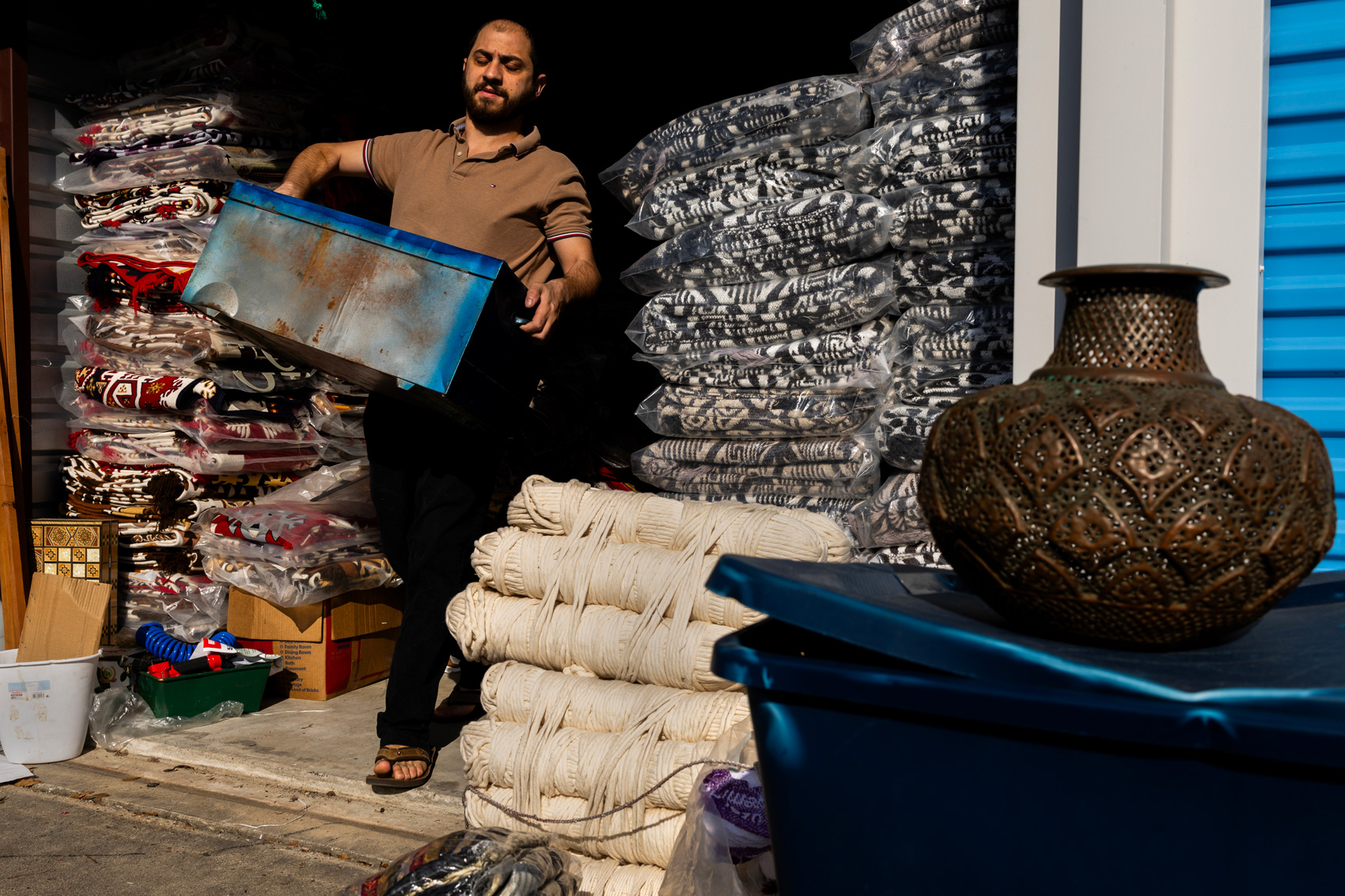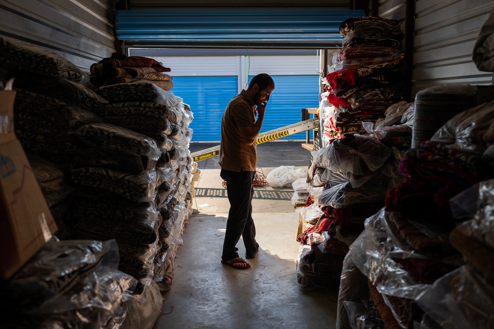 Before each market, Mahmoud Koseyaem goes to his storage locker and picks out the items he wants to sell. Because of his families expertise and history in rug making, Koseyaem is able to distinguish which rugs will sell best for the American market. (Antranik Tavitian / Houston Landing)