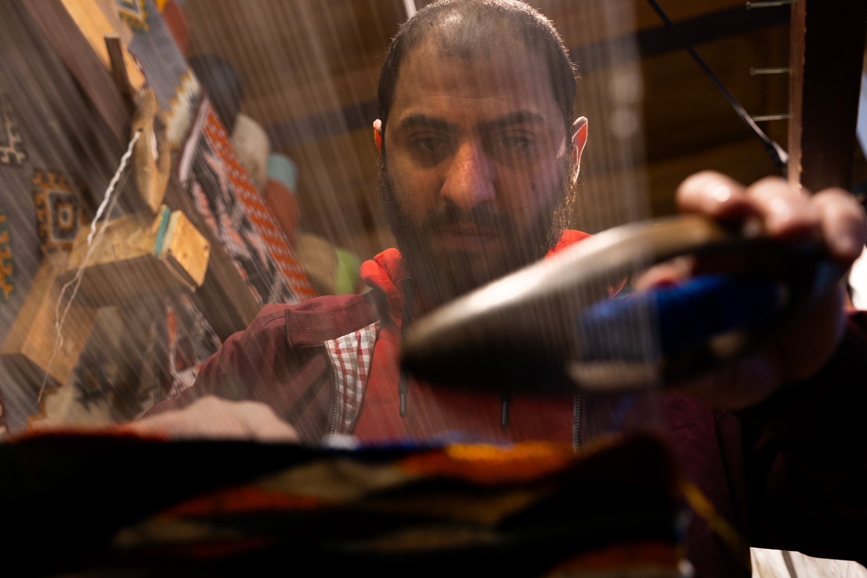 Koseyaem’s family has been weaving in Aleppo for more than eight generations. His father, Abdulkadr Mahmoud Khsyaem, used to have one of the largest rug stores in Aleppo’s famous Citadel bazaar. Koseyaem practiced weaving there as a child.