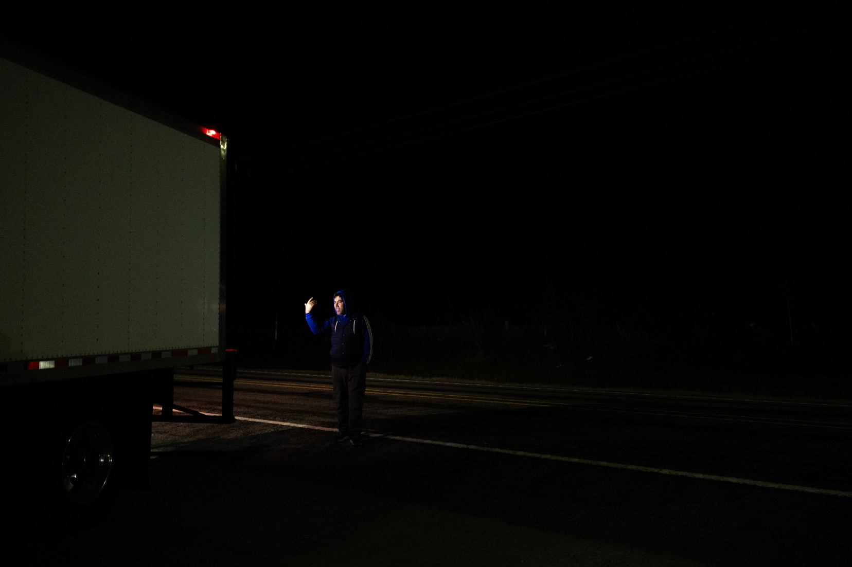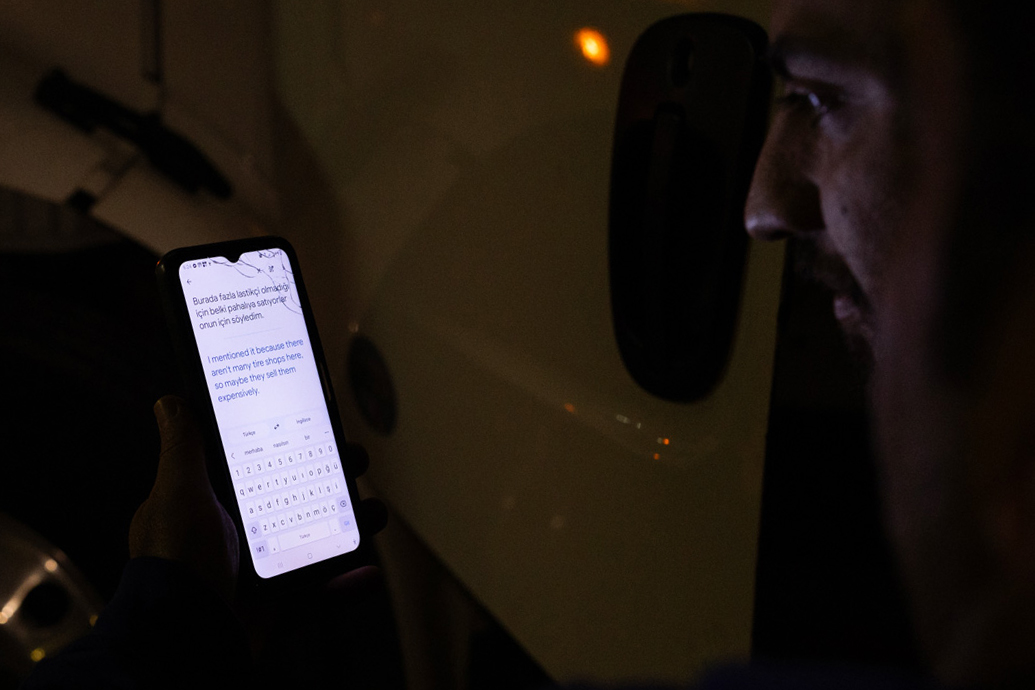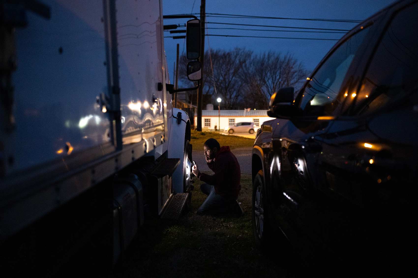 After a couple of days spent at the Canton market, it was time for Koseyaem to head to his next market in Arizona. Before he could leave, he realized the tires on his new truck were completely worn. He and his employee for the month, Abdurrazak Cokur of Turkey, drove to a nearby tire shop to get it changed. (Antranik Tavitian / Houston Landing)
