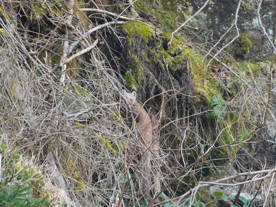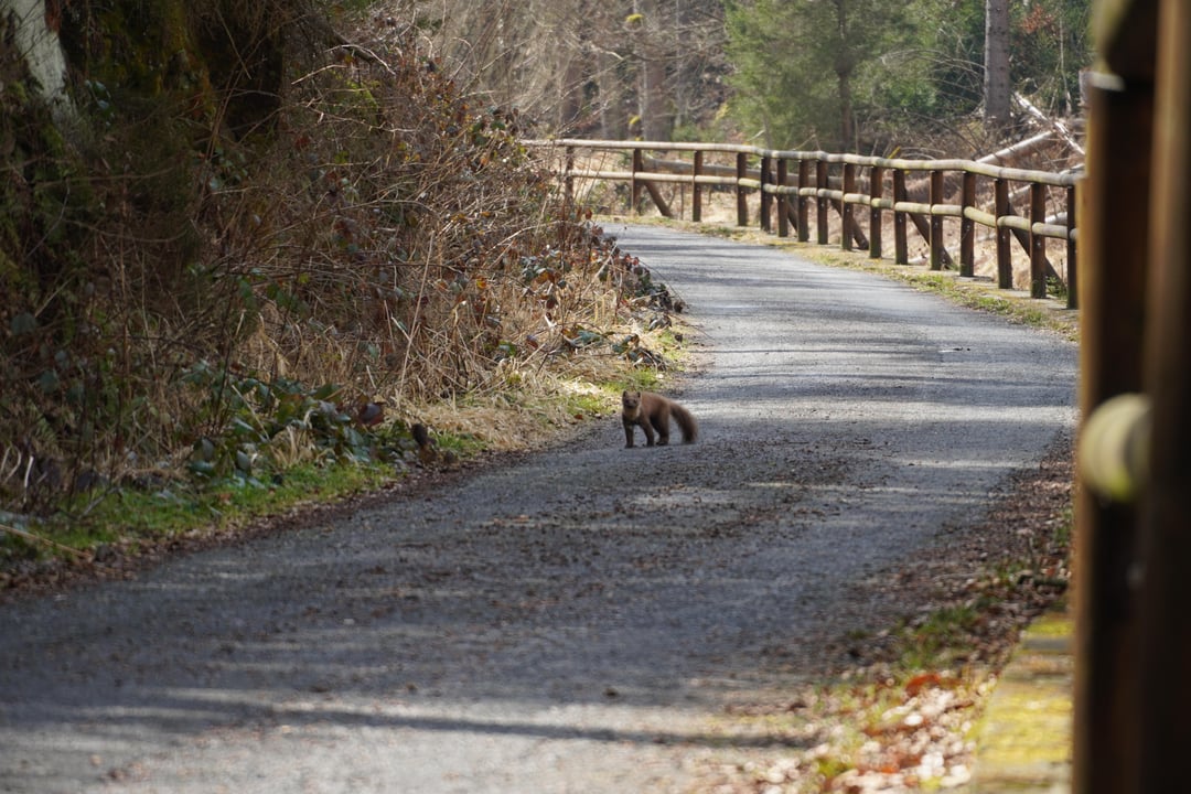 (Bilder sind gecroppt, das letzte Bild nochmal als Vergleich für die tatsächliche Entfernung). Er war super nah dran und hat mich erst bemerkt, als die Kamera geklickt hat. Auf dem zweiten Bild scheinen die Augen ziemlich trüb zu sein, ich vermute das Tier ist schon älter und (mehr oder weniger) blind. Sonst hätte er sich wohl auch nicht am helllichten Tag blicken lassen.