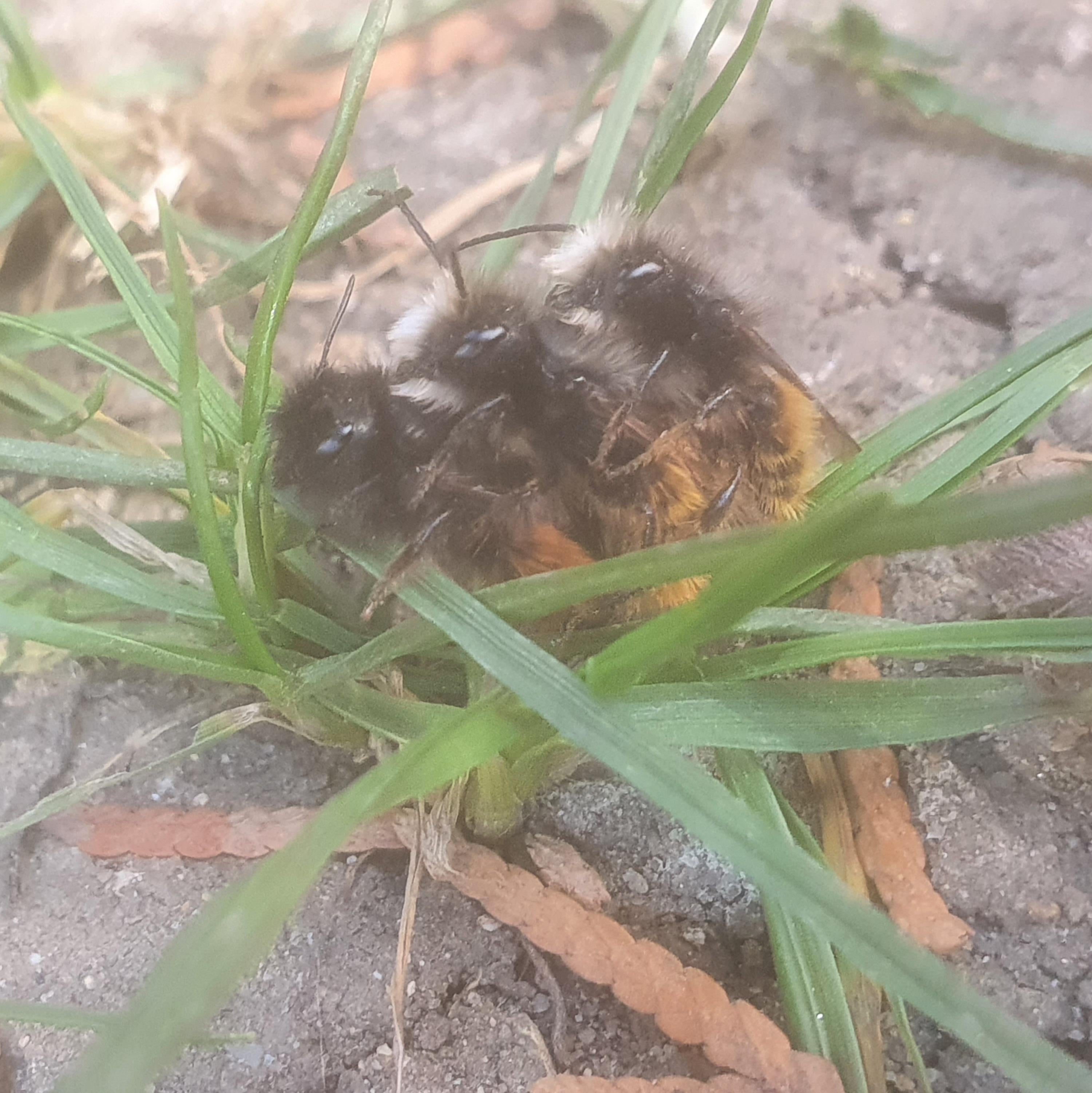 Schickes Foto. Hier sieht man schön, dass man die Männchen anhand der weißen Gesichtsbehaarung gut von den Weibchen unterscheiden kann. Dürften gehörnte Mauerbienen sein.