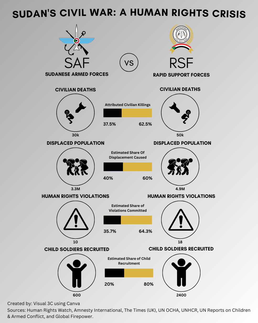 Sources: Human Rights Watch, Amnesty International, The Times (UK), UN OCHA, UNHCR, UN Reports on Children & Armed Conflict, Global Firepower Made with Canva.