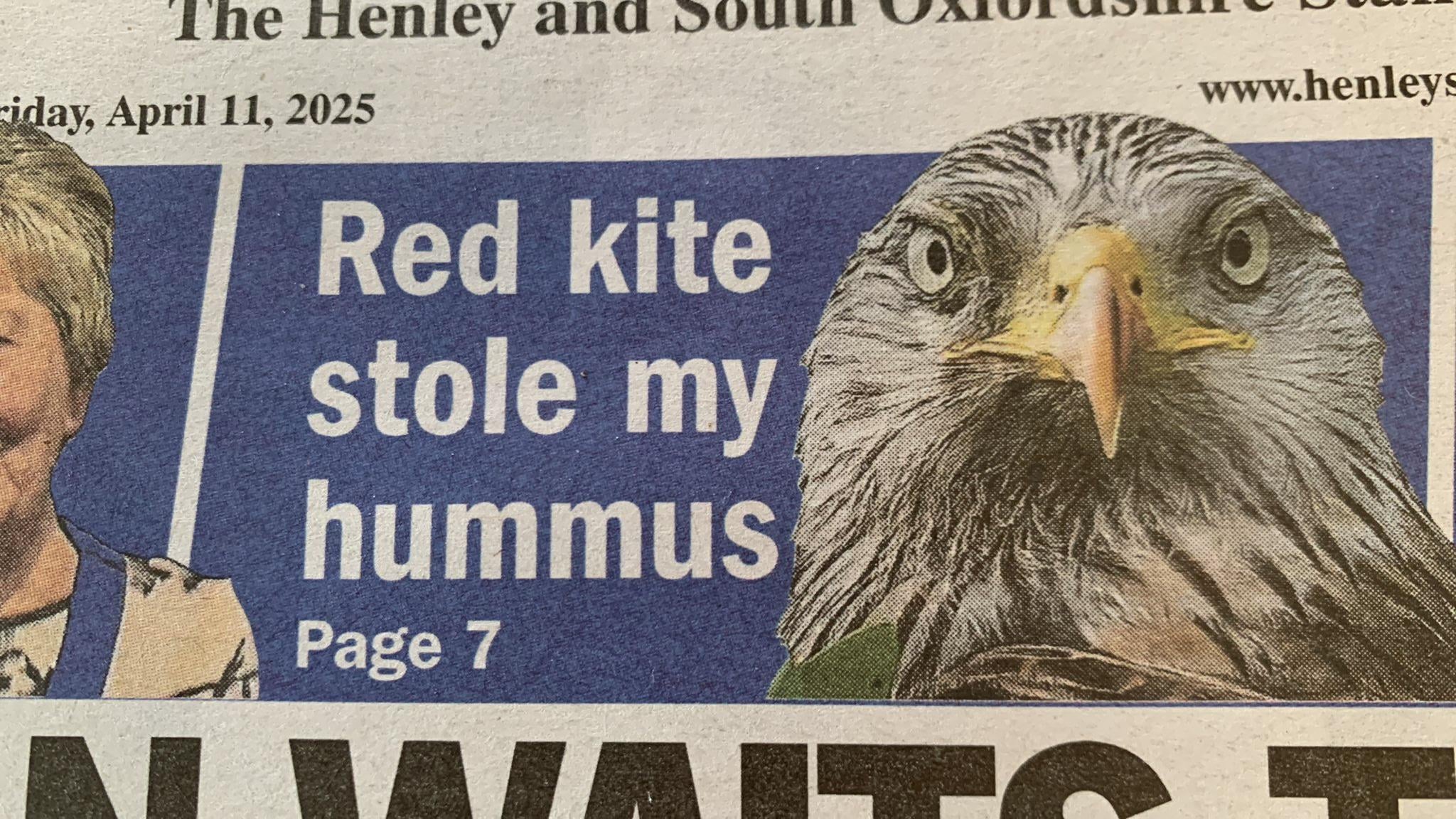 You think that’s bad, a pheasant stole my baba ghanoush in Frome.