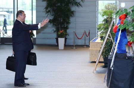 The Myaku-Myaku doll struck up the conversation with the prime minister, telling him as he walked into the office building, “Everybody is your friend and on your side.”