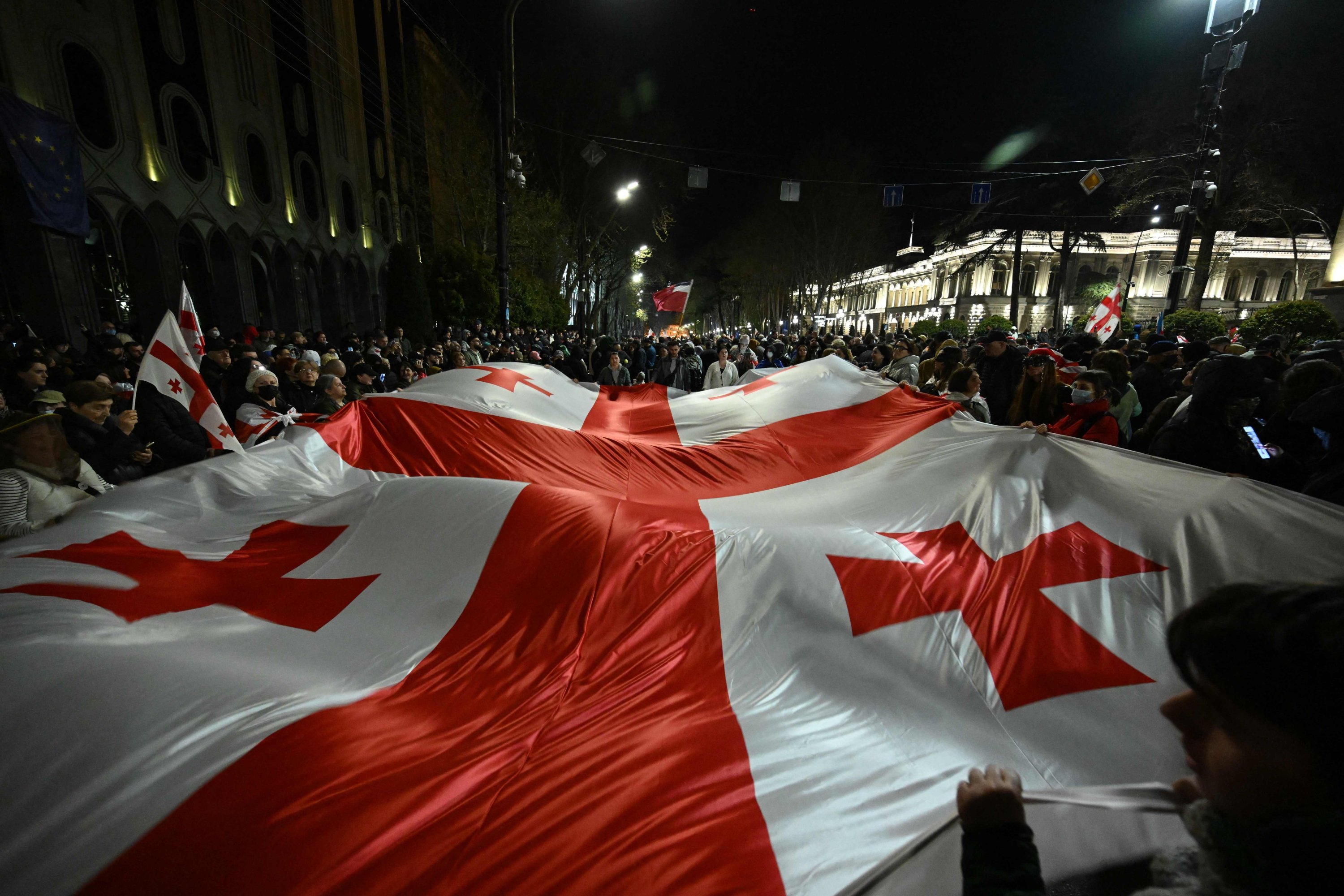 Georgian pro-Europe demonstrators stage an anti-government rally outside the Parliament building, Tbilisi, Georgia, March 31, 2025. (AFP Photo)