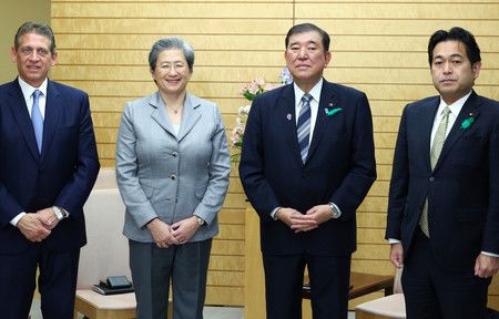 Tokyo, April 17 (Jiji Press)–Japanese Prime Minister Shigeru Ishiba on Thursday called on U.S. chipmaking giant Advanced Micro Devices Inc. to cooperate with Japan in developing artificial intelligence technologies.