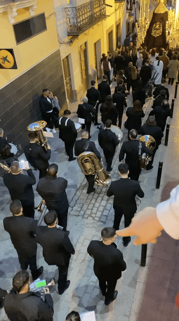 The Most Spanish Thing Ever- A Musician Marching During a Semana Santa Celebration in Alcala del Valle Has a Live Football Match Streaming on His Phone On Top of His Music Notes During the Procession