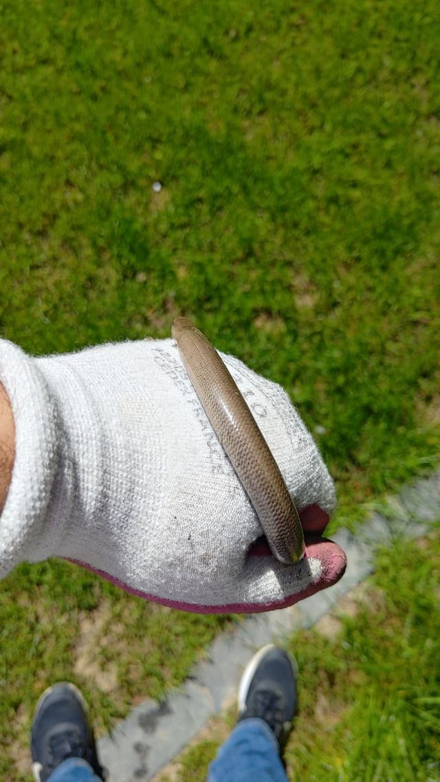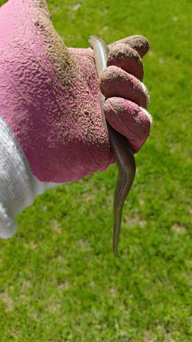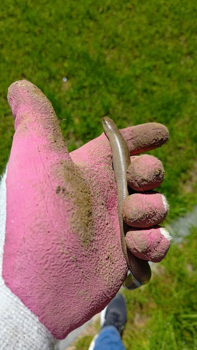 Ja, Blindschleiche, ist aber keine Schlange, sondern eine Echse ohne Beine. Total harmlos und nett 😊
