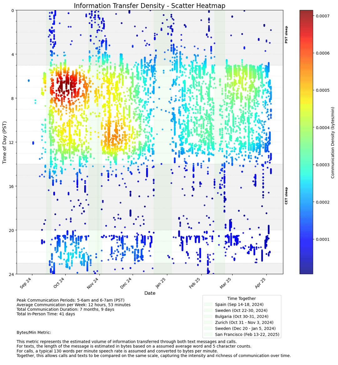 - Communication density plot accounting for how many bytes of information are exchanged over time.