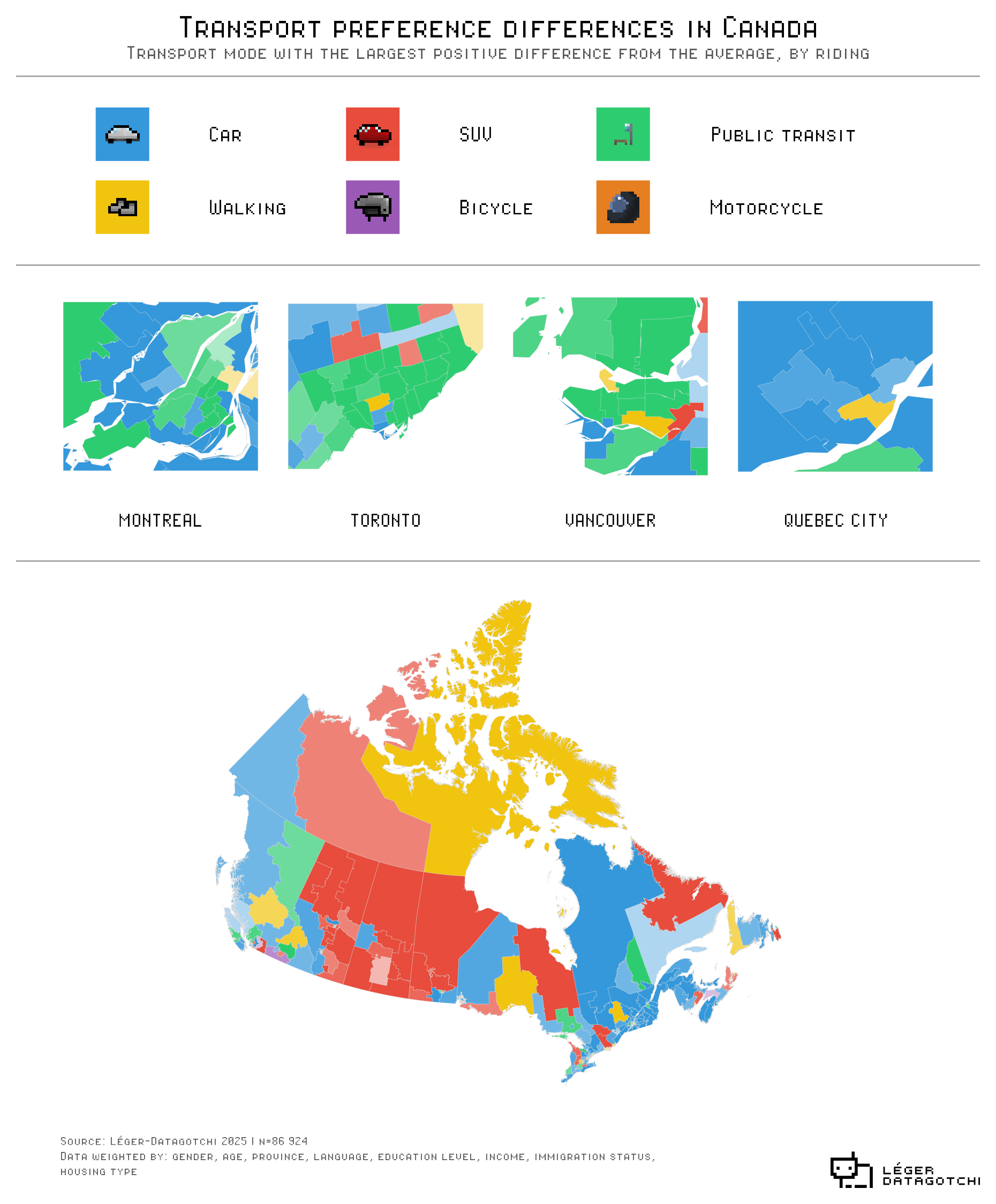 No surprise here, Car is the method of transportation of choice for the average Canadian.