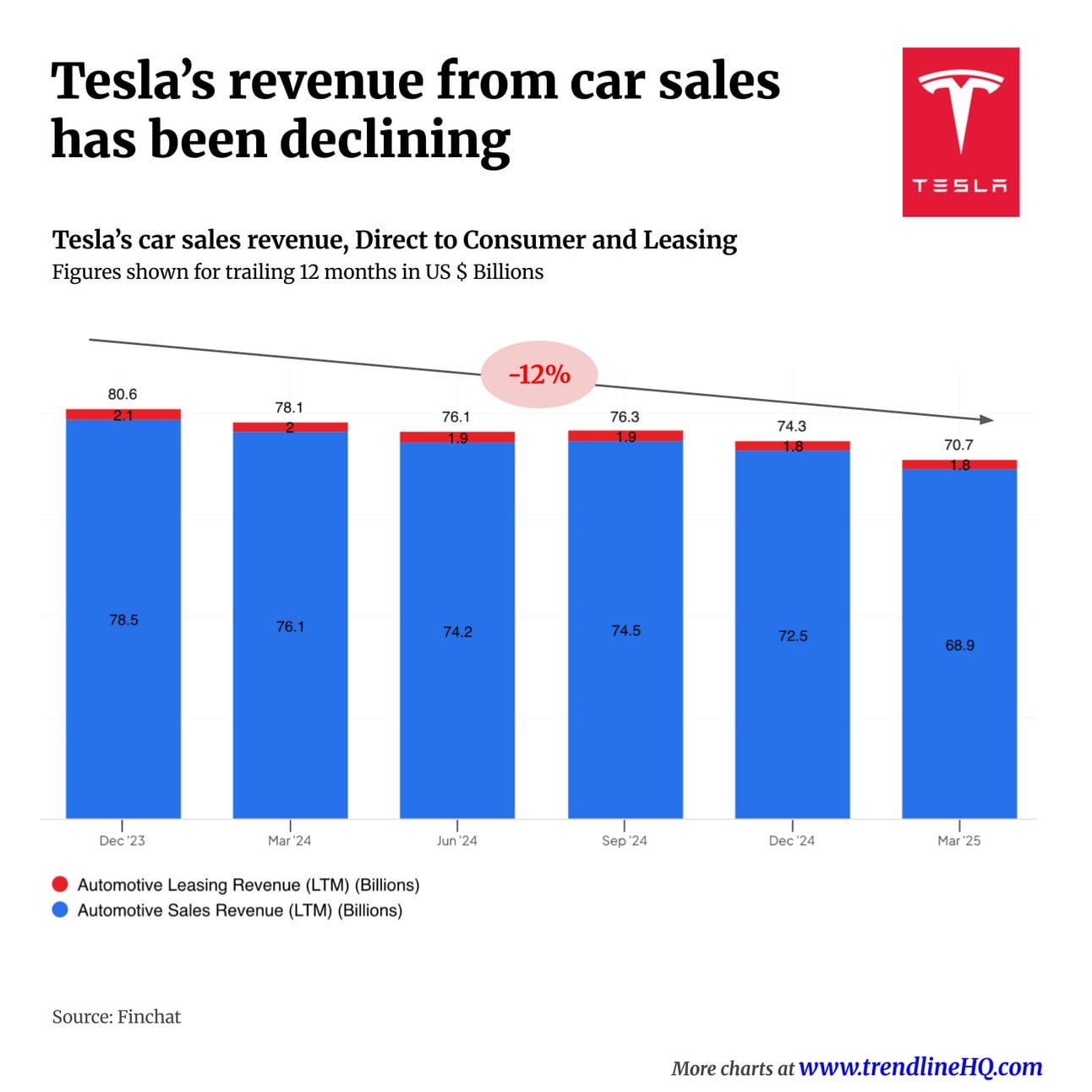 Tesla car revenue is declining