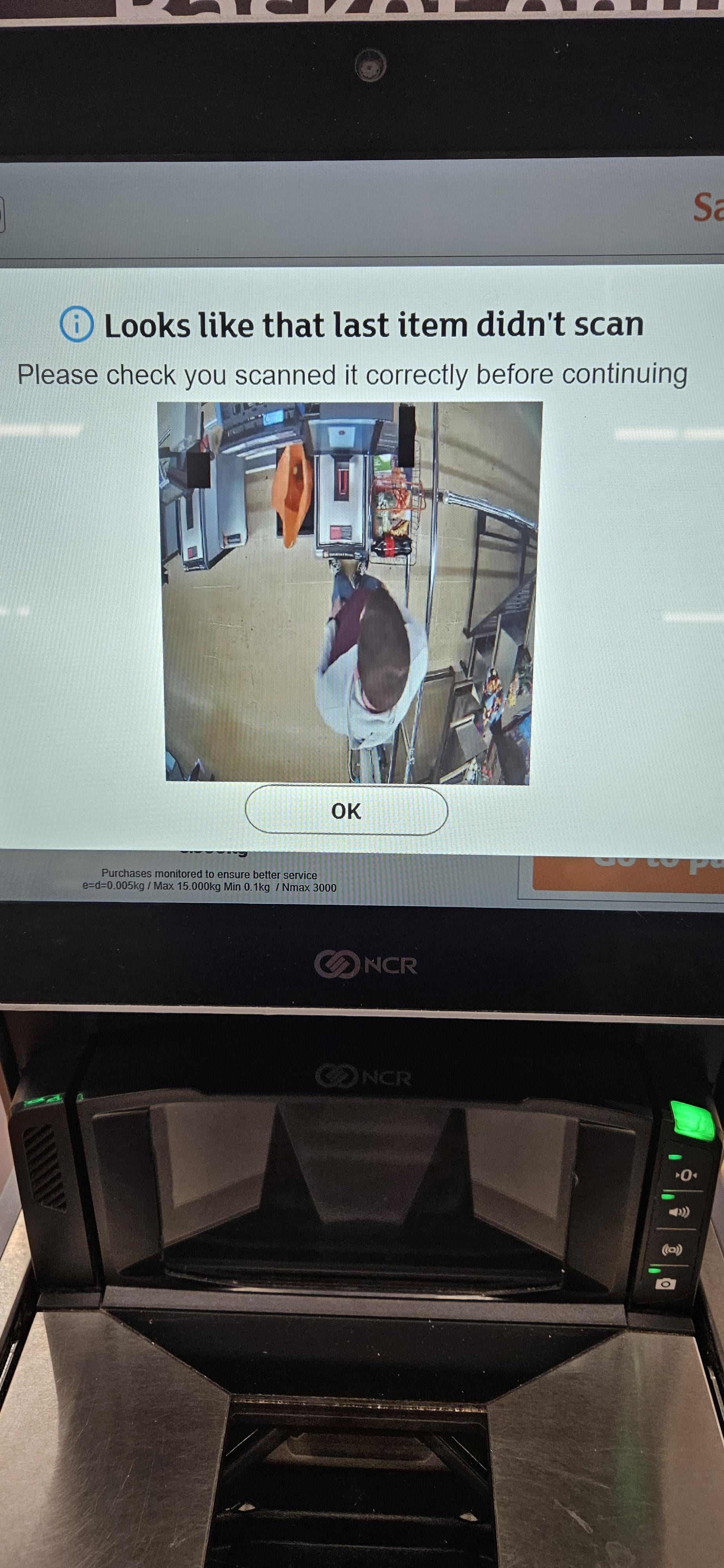 “Please check you scanned it correctly before continuing. We wouldn’t want to think you’re a filthy fucking thieving bag of twats now would we? There’s a good boy. “