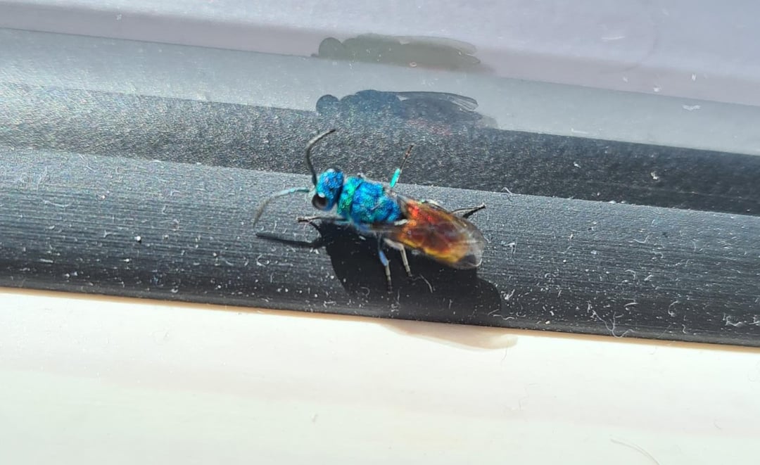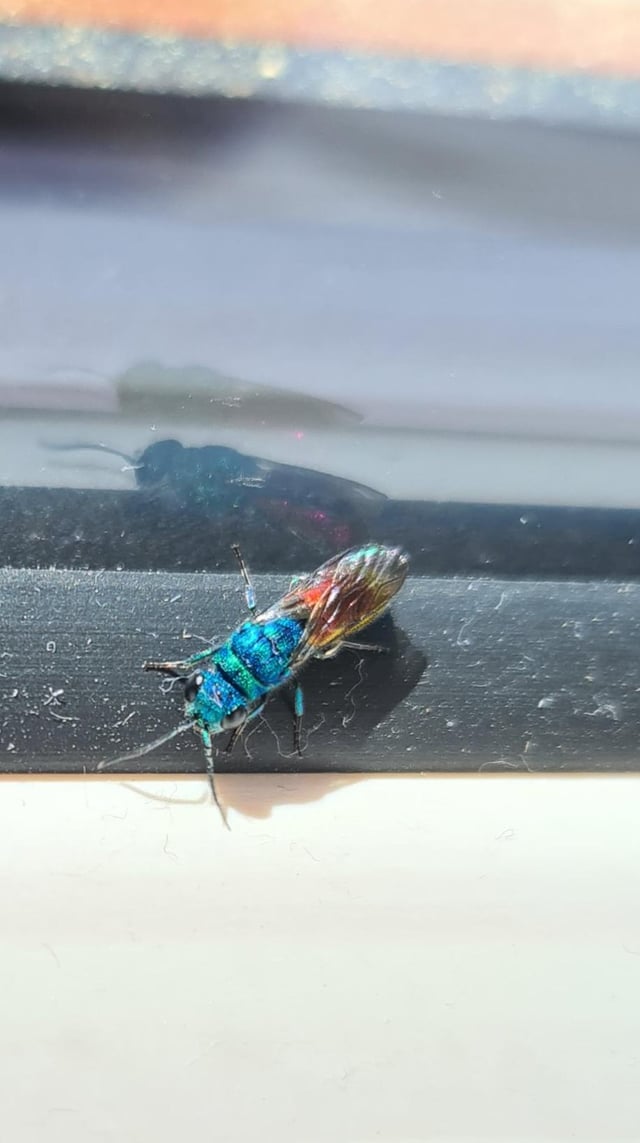Hallo zusammen 🙂 dieses kleine Tierchen ist in meine Wohnung geflogen. Google Lens sagt es ist eine Gemeine Goldwespe. Stimmt das? Und falls ja, ist die im Südschwarzwald selten?