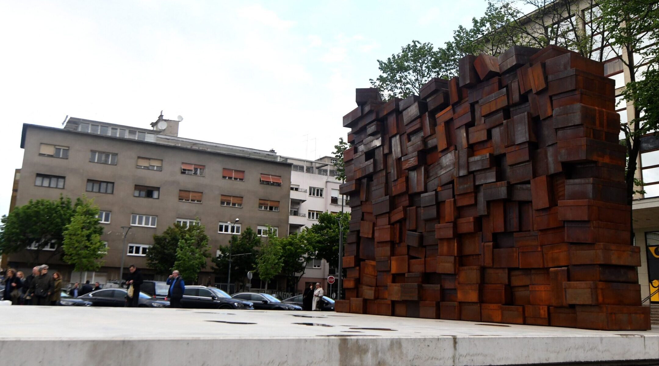 The 39-foot-high memorial for the victims of Holocaust and Croatia’s pro-Nazi World War II regime as seen during its unveiling in Zagreb on April 27, 2022. (Denis Lovrovic/AFP via Getty Images)