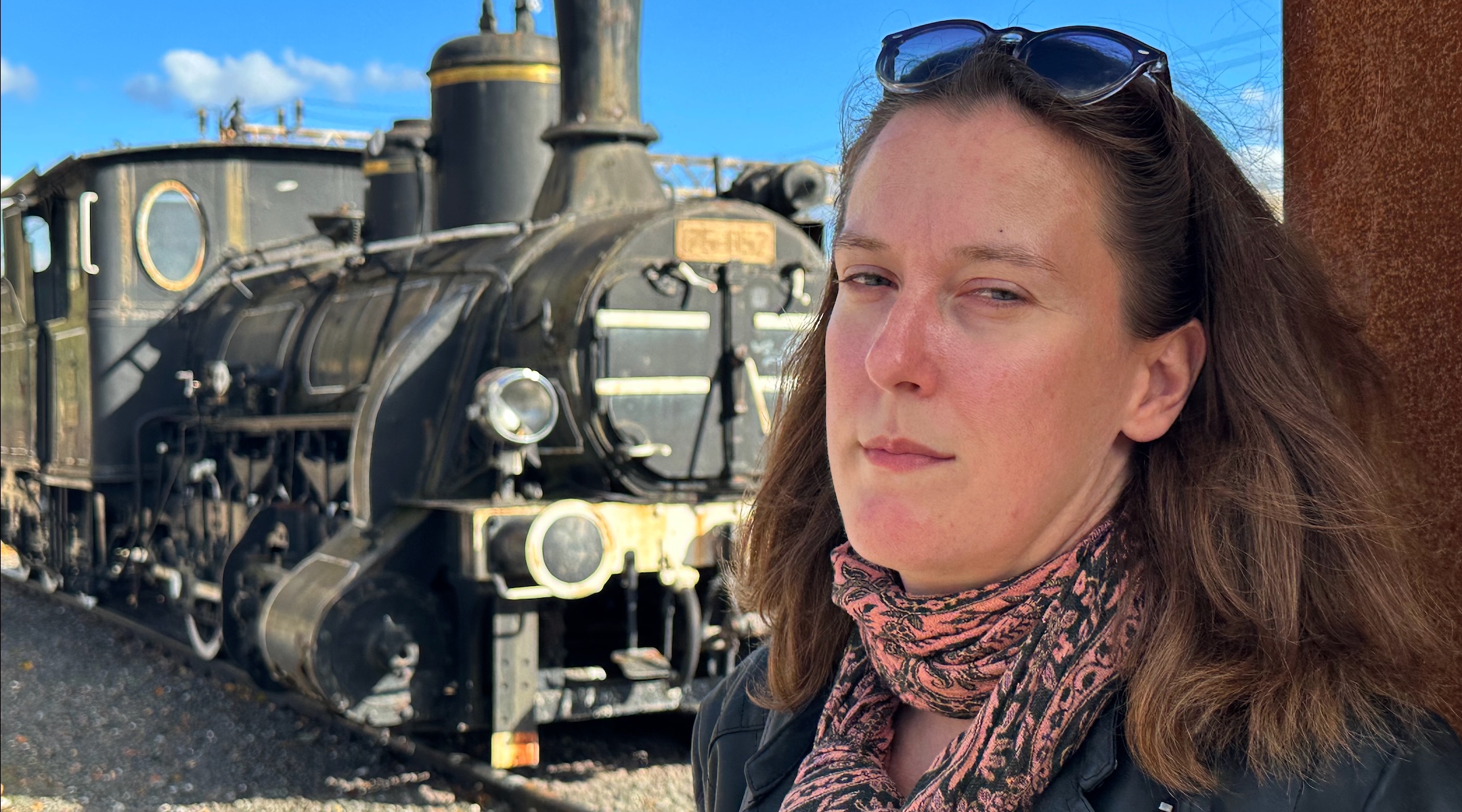 Croatian tour guide and Holocaust scholar Tena Banjeglav explains the significance of the train memorial at Zagreb’s main railway station. (Larry Luxner)