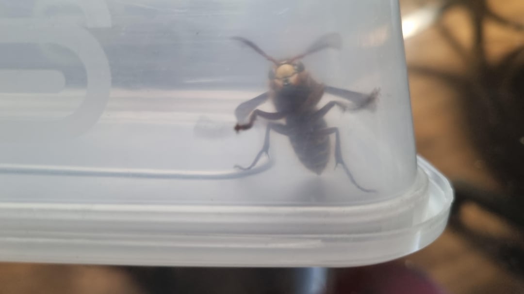 Hornets are a bit more sentient than we think. If you approach the container, it’ll turn and look at you, raising its front legs. If anyone else approaches, it won’t do that, so it recognises the person that trapped it.
