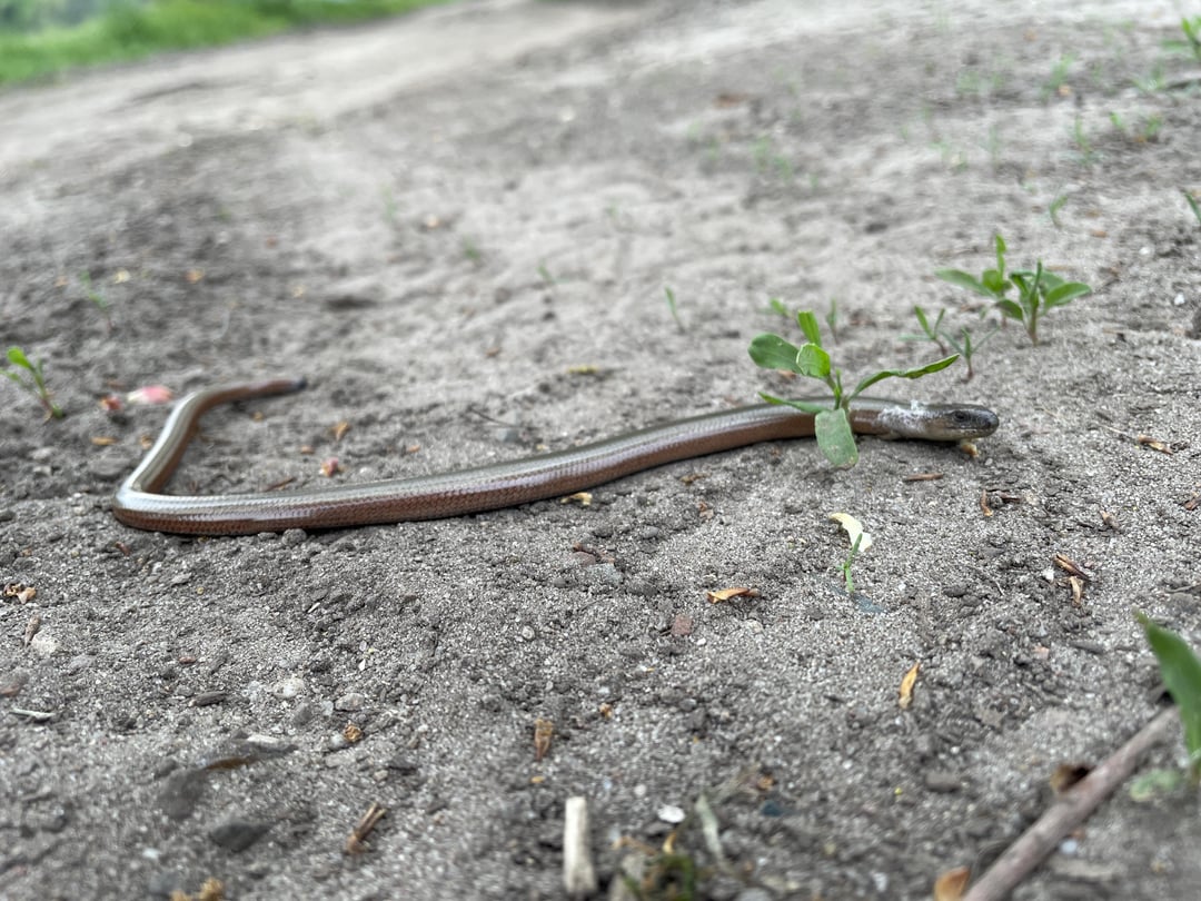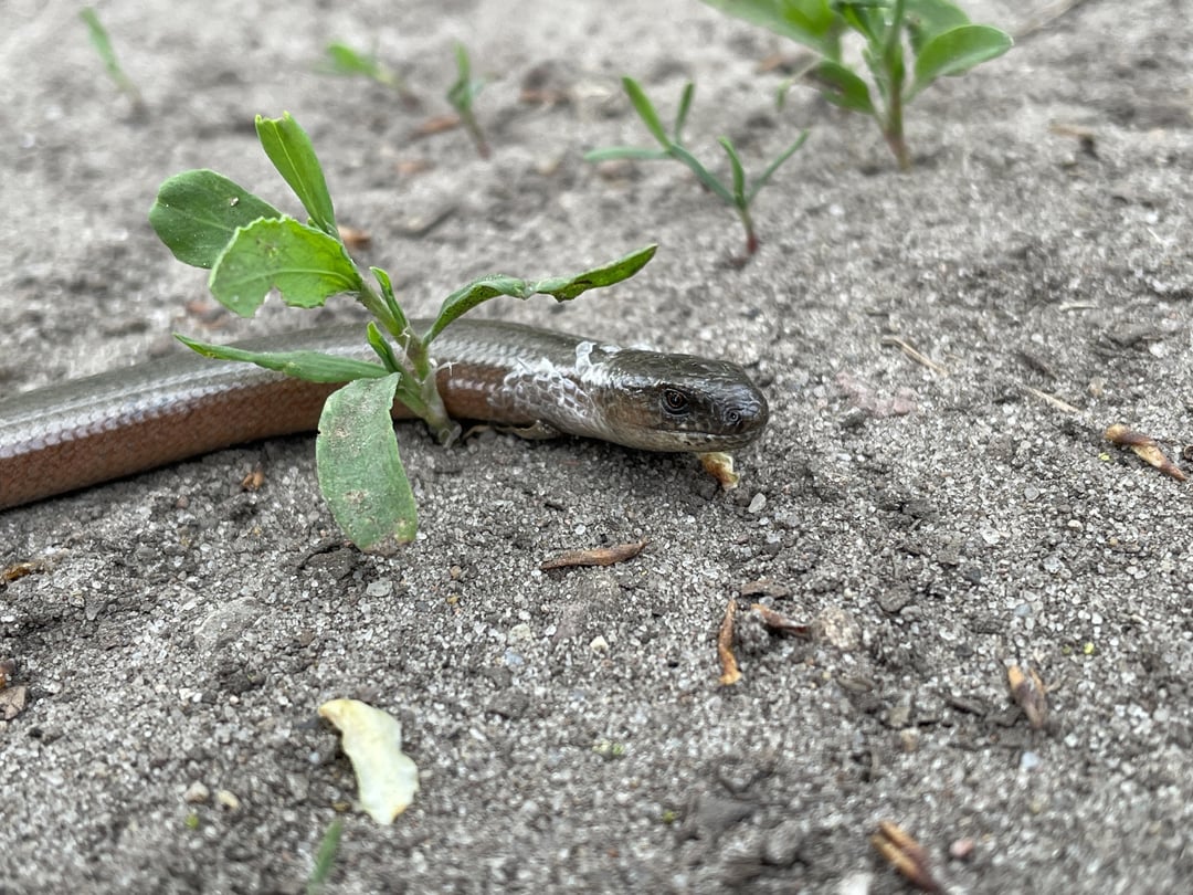Beim Wandern sind wir einer frisch gehäuteten Blindschleiche begegnet, die sich im Sand gewärmt hat. 🙂