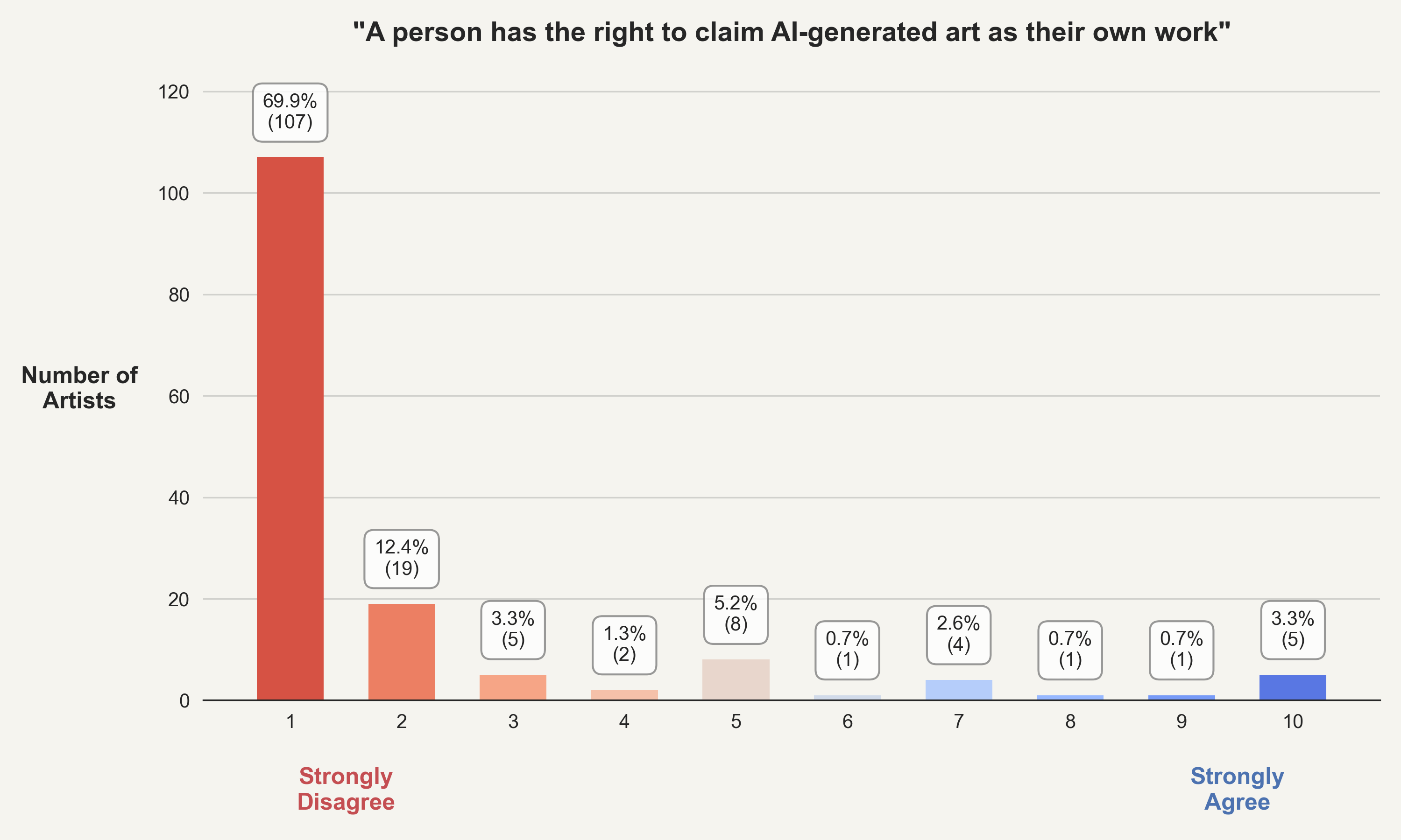 [OC] Barplot of artist survey responses to “A person has the right to claim AI generated art as their own work”