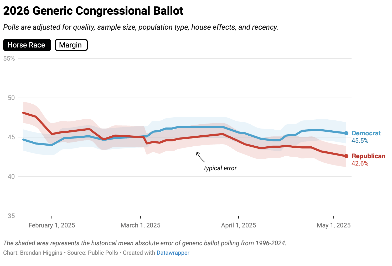 Democrats now lead by +3% in Generic Ballot Average: https://smokefilledroom.substack.com/p/which-party-is-on-track-to-win-the?r=2w9tr1