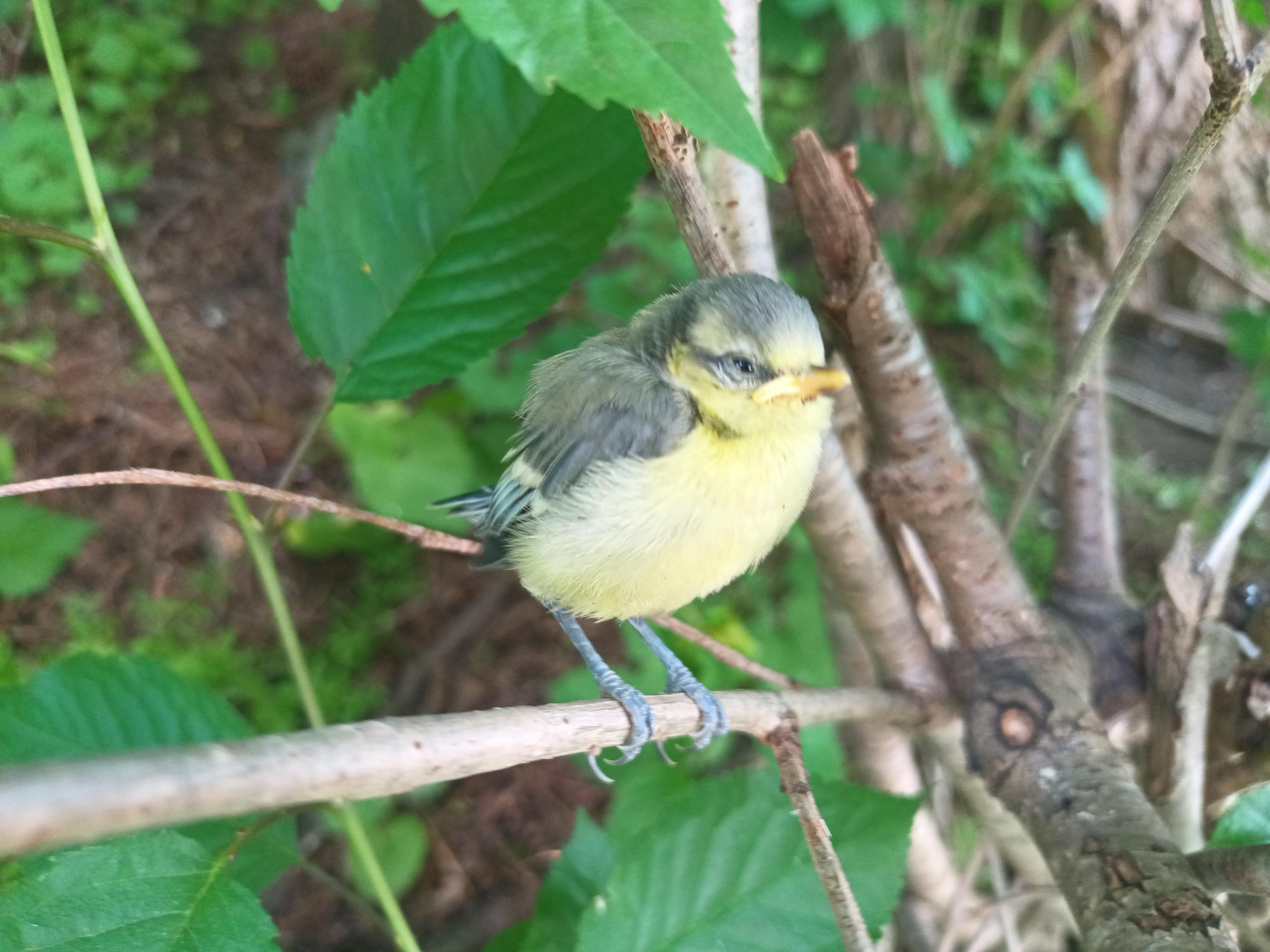 (Ich tendiere ehr zur Blaumeise, aber die Unterscheidung ob Blau- oder Kohlmeise ist in dem Alter ohne mehr Fotos schwer.)