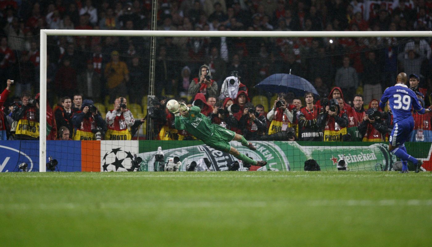But, instead, he slipped on the rain-soaked surface and hit the post, opening the door for Man United to win the shootout instead, after Edwin Van Der Sar saved Nicolas Anelka’s penalty.