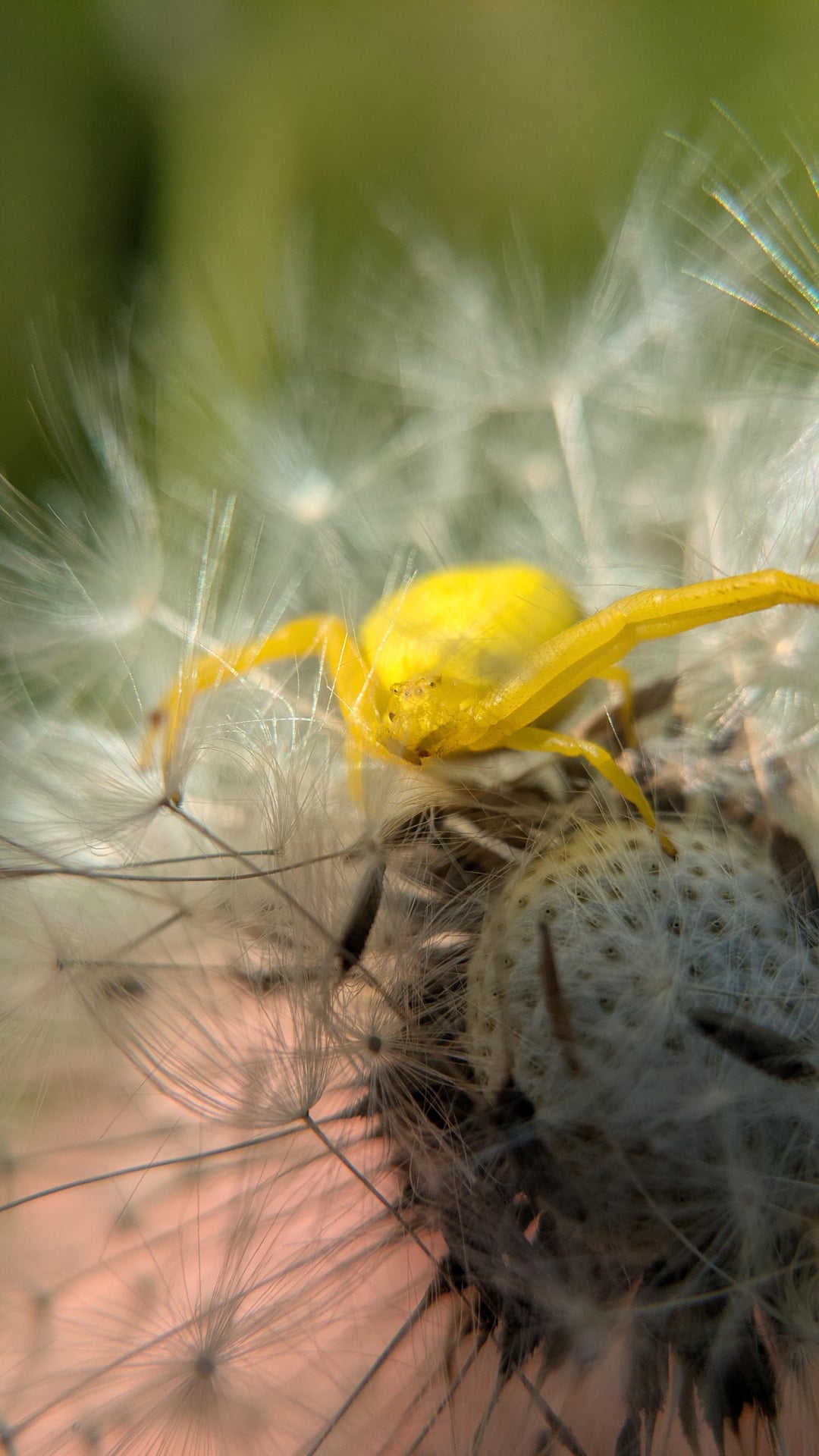 Nicht vergessen, aber der Wechsel dauert einige Tage. Quelle: [https://arages.de/arachnologie-vernetzt/spinne-des-jahres/2006-veraenderliche-krabbenspinne](https://arages.de/arachnologie-vernetzt/spinne-des-jahres/2006-veraenderliche-krabbenspinne)