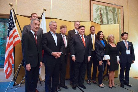 The reception was attended by Illinois Governor J.B. Pritzker and Michigan Governor Gretchen Whitmer, both viewed as potential Democratic candidates for the U.S. presidency, as well as high-ranking officials from the U.S. Commerce Department and executives of Japanese companies.