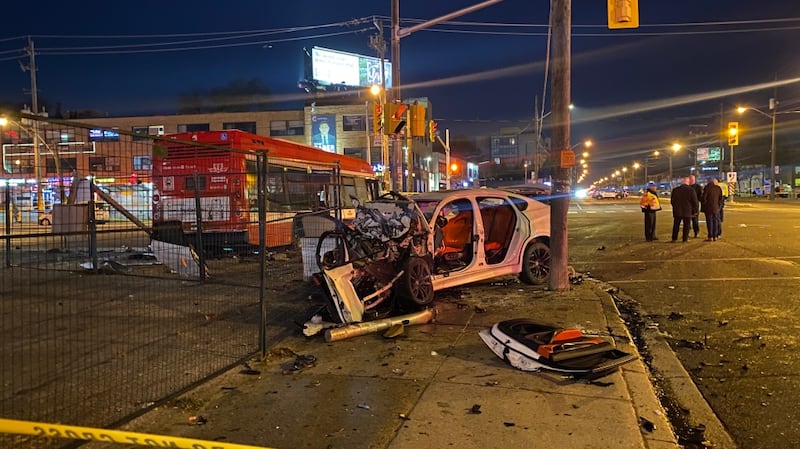 Two of the BMW’s occupants were pulled from the vehicle and two others needed to be extricated by Toronto firefighters. Two occupants were rushed to a trauma centre in life-threatening condition.