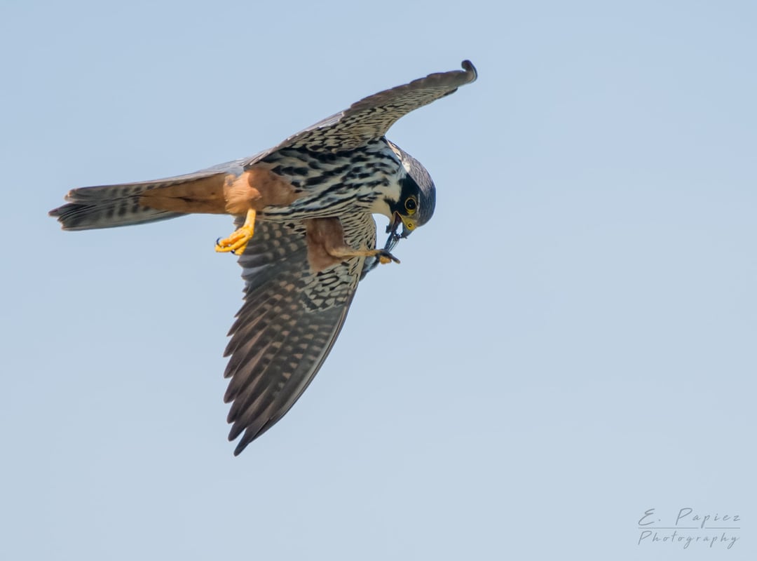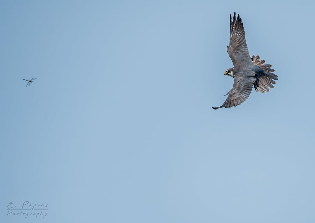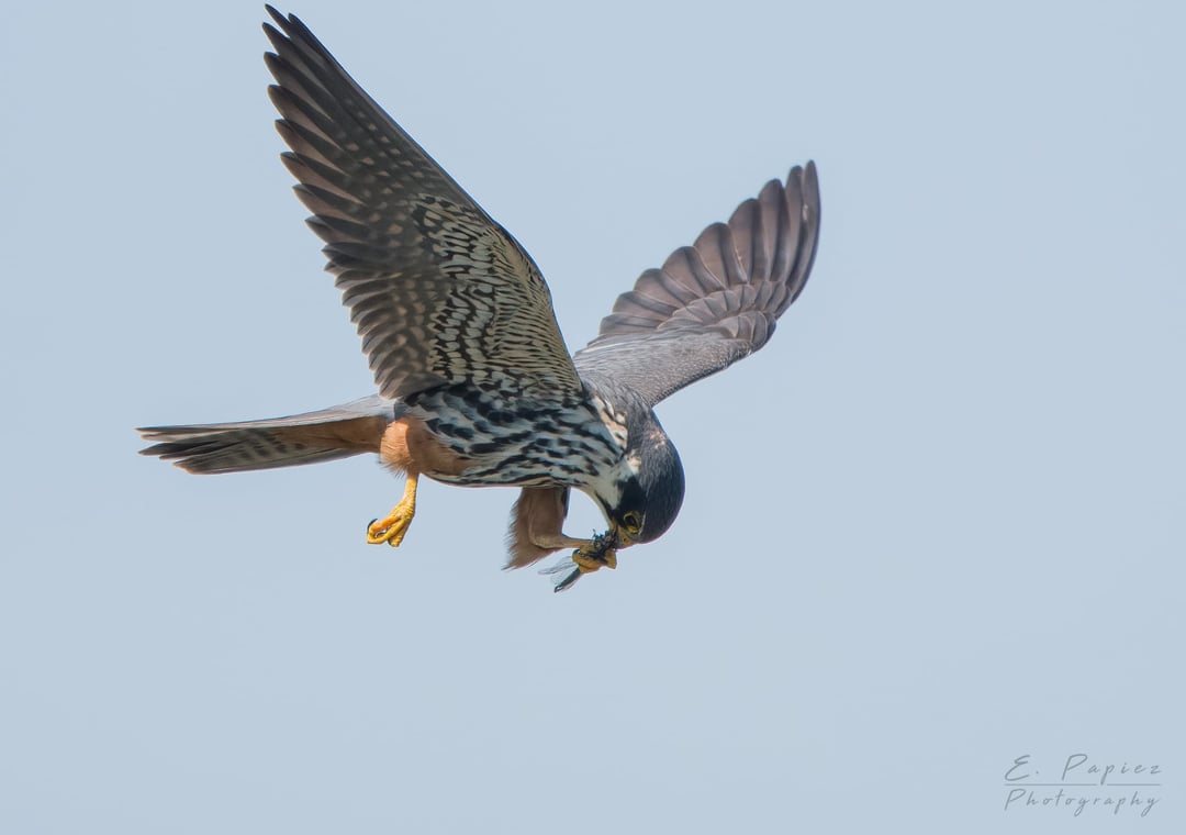 I was out with my camera yesterday when all of a sudden a flight of Hobbys descended and a feeding frenzy ensued. Hobbys are a small incredibly agile falcon that catch their prey in the air. In this case they were feeding on dragonfly but they are know to catch swallow and swifts too.