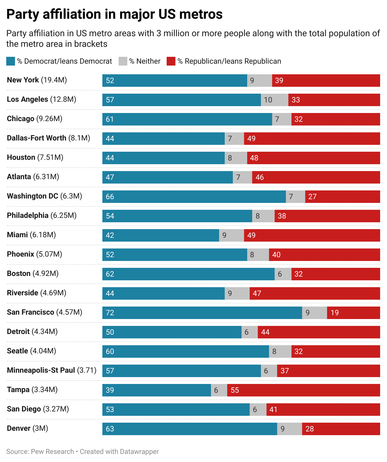 27. Hard to believe that Tampa is more Republican than New York City is Democratic.