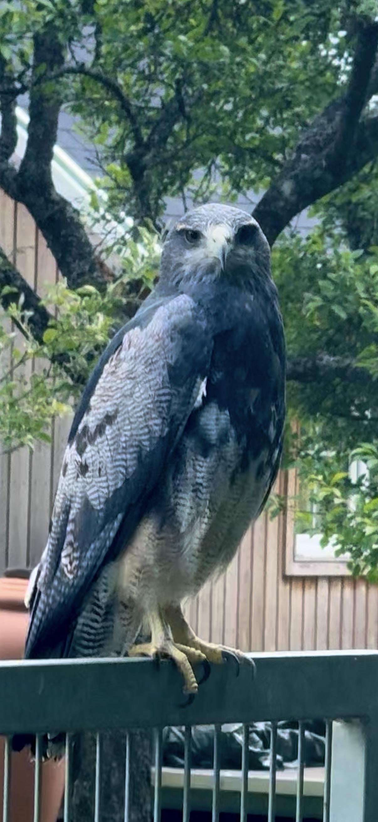 Nachschauen ob es in der Nähe einen Falkenhof , Falkner oder Zoo gibt und dort mal nachfragen, ob ein Greifvogel vermisst wird.