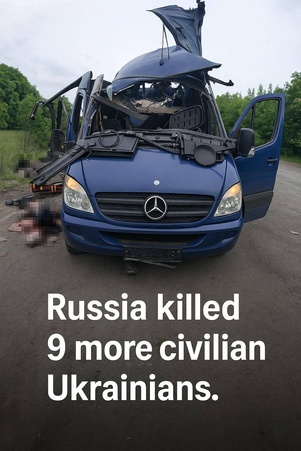 A Russian drone strike hit a bus near Bilopillia, Sumy region. 9 people killed, including a family with a child, 7 injured. Another russian brutal attack on civilians.