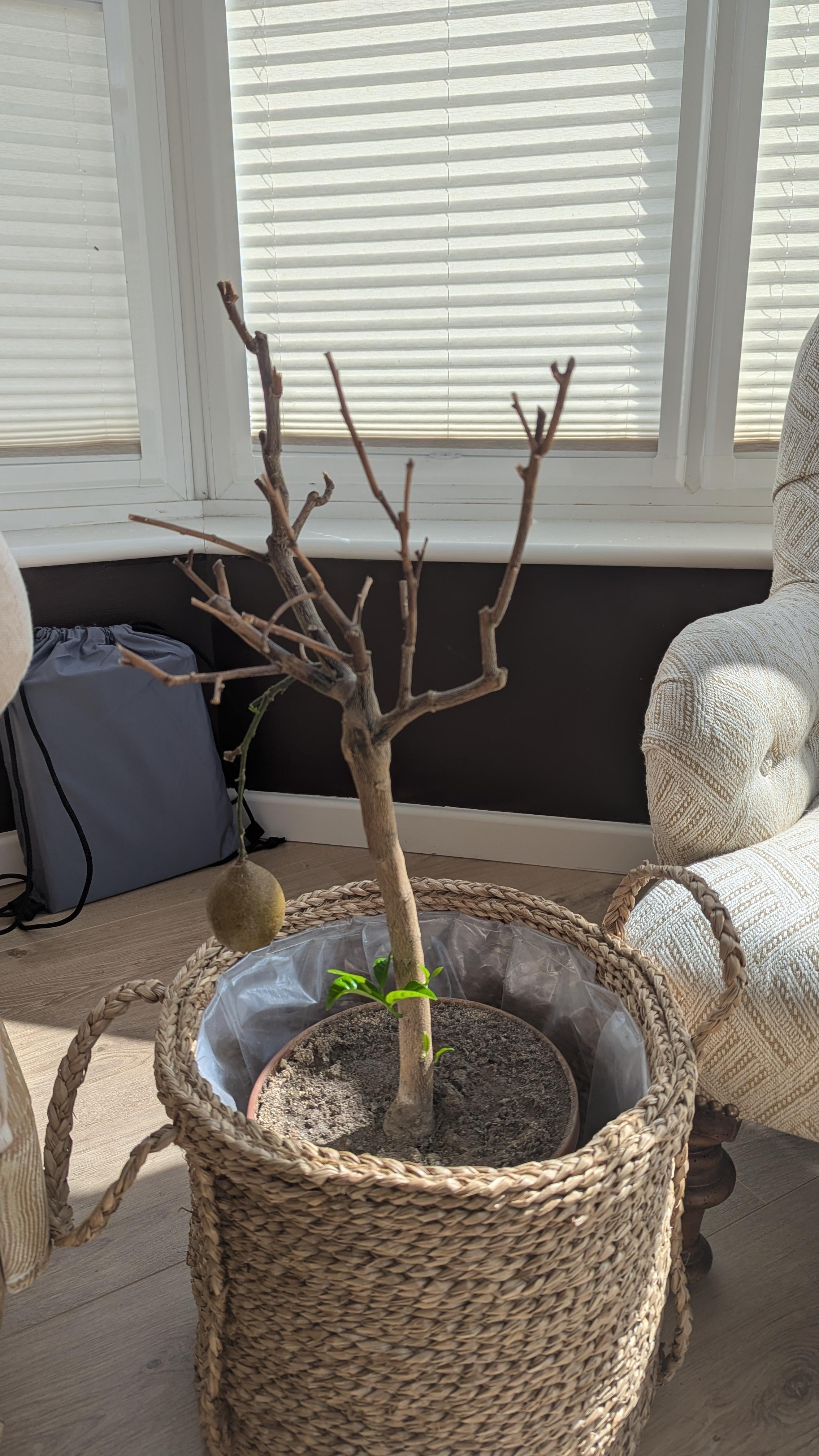 Husband thinks the new green shoots is rationale to keep this lemon tree. I think it’s basically dead and we should quit while we’re behind. Thoughts?