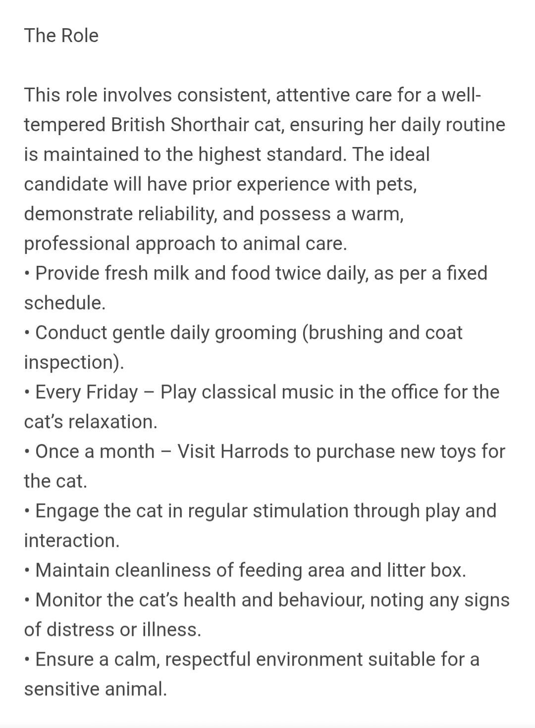 I wonder how much of the job is cat sitting, and how much is being a personal assistant?