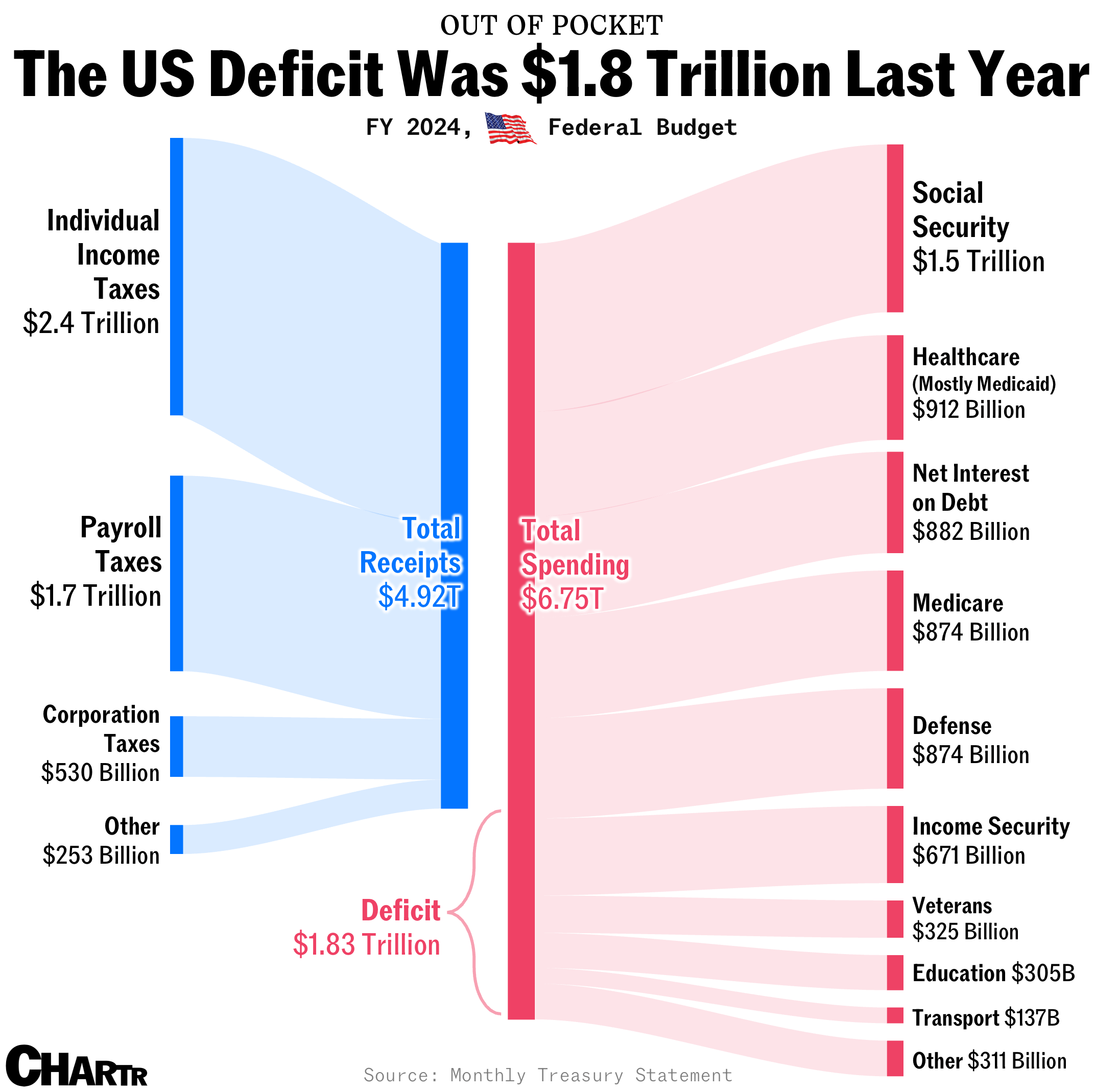 The main problem seems to be the money spent healthcare and medicare. If that much is spent, US shouldn’t have the kind of medical insurance problems they are having right now. There is definitely something stealing the money in the middle.
