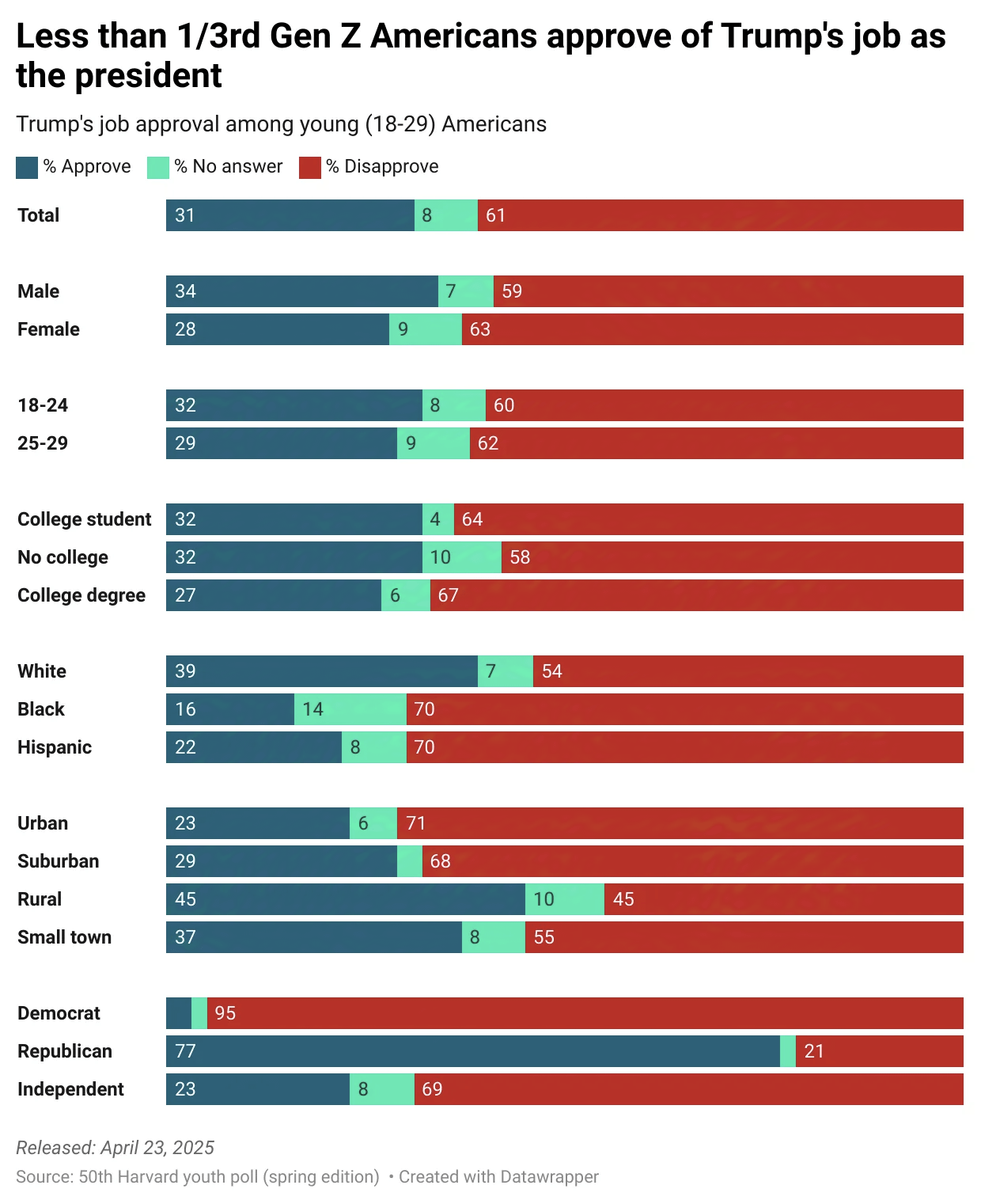 Source: [Harvard Youth Poll](https://iop.harvard.edu/youth-poll/50th-edition-spring-2025)