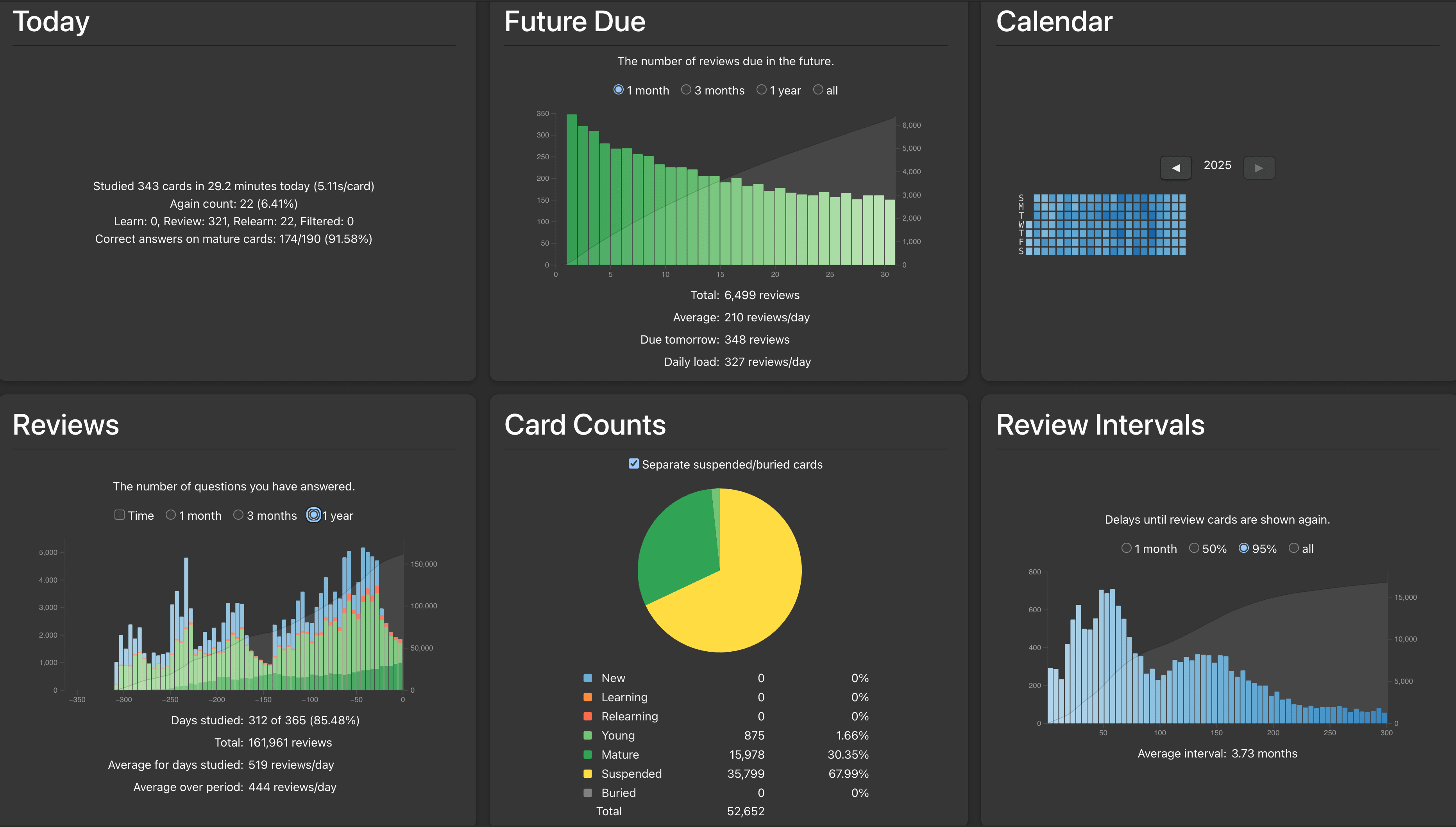 Tools used are the stats feature in Anki Posted by nickgiorgio Tags:DataData Is BeautifulDataIsBeautiful 6 comments Wow that’s looks really stressful That’s some grinding, good job buddy hell yeah, i’m taking this fall to grind MCAT studying at my parents house full time, excited to go head over heels into maximizing anki’s potential Get ready to bust open the other 36k next year. Showed this to my partner who is sitting next to me doing Anki right now. Which packs are you using? Comments are closed.