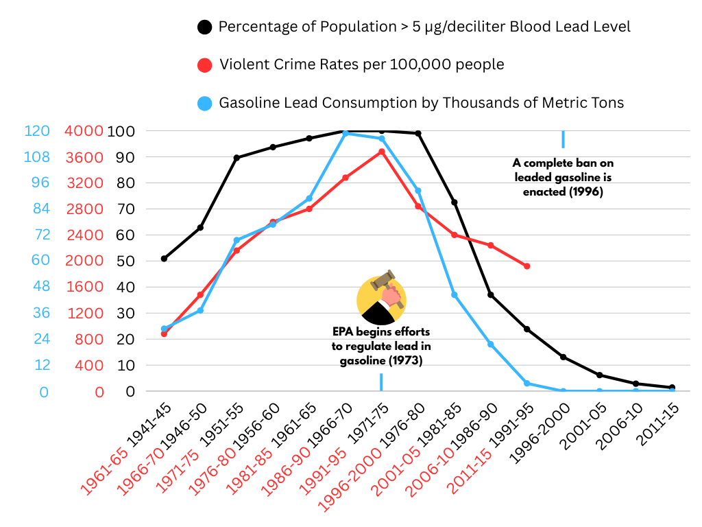 Lead-crime hypothesis – https://en.wikipedia.org/wiki/Lead%E2%80%93crime_hypothesis