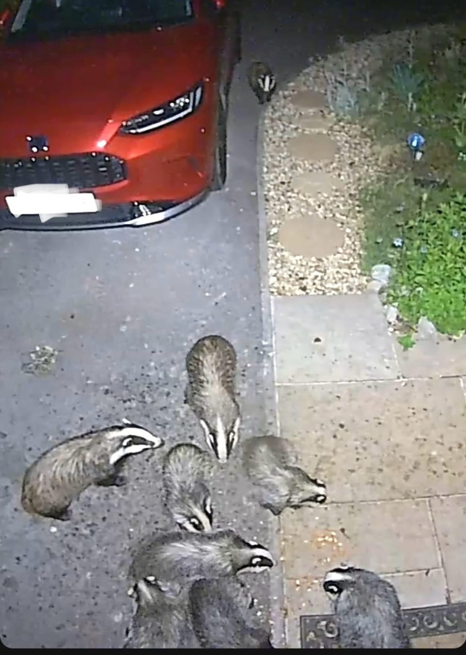 My aunt has nightly visits from badgers and puts out food for them. 9 badgers including cubs turned out tonight! That’s a record!