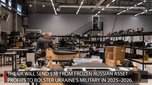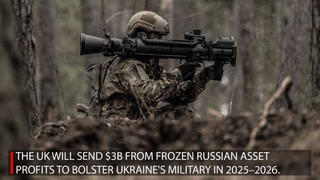 The UK will send $3B from frozen Russian asset profits to bolster Ukraine’s military in 2025–2026. The funds will support weapons purchases, joint defense projects, and critical supplies. It’s part of the G7’s $50B ERA plan, using Russian assets held in the EU and beyond.