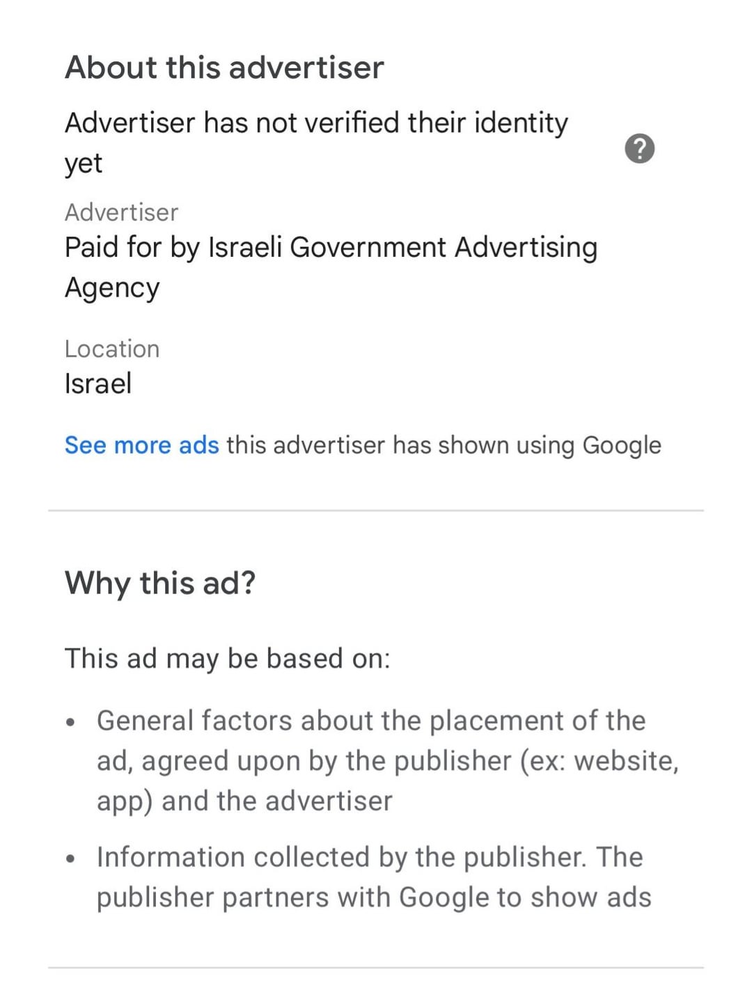 France, Hungary, USA and others have had adds in newspaper and on SoMe in Denmark for many years. This times the add is from Israel. Because you dont like Israel and want to cancel their freedom of expression, you will call it “Foreign government propaganda”.