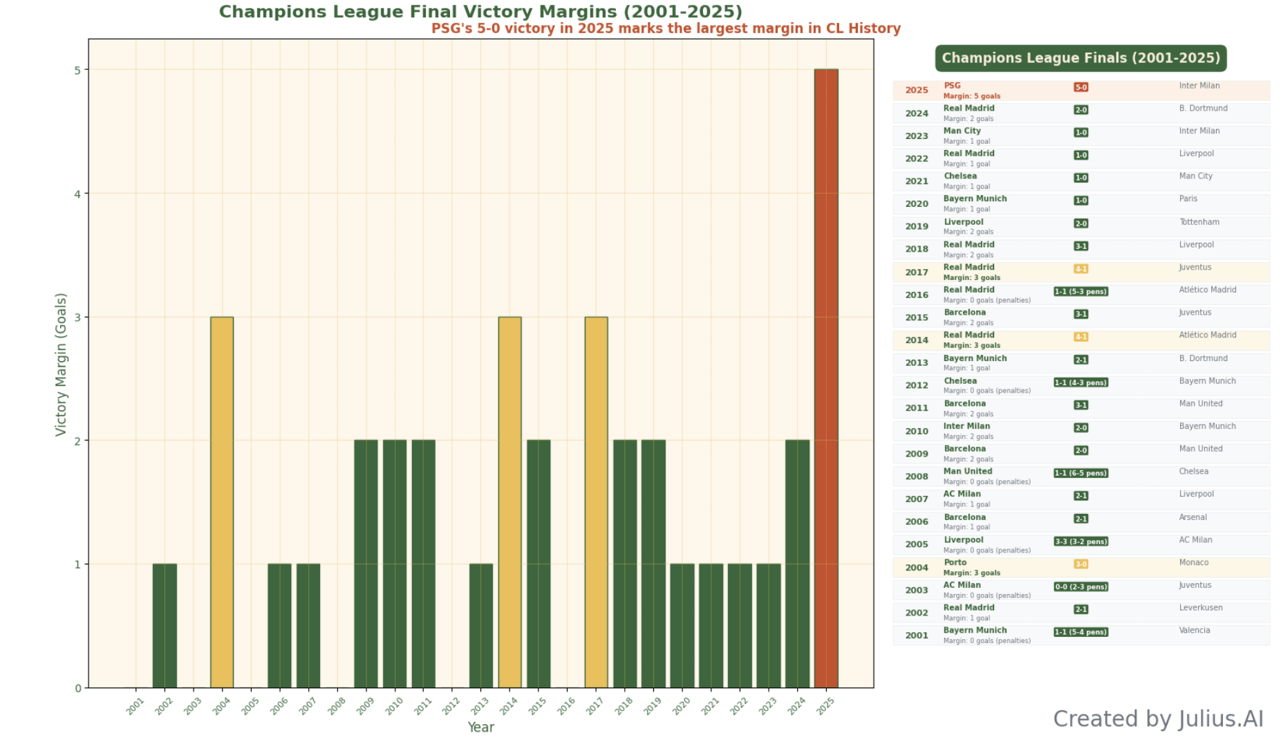 [OC] PSG’s 5-0 UCL final win was the most lopsided Champions League Final in History