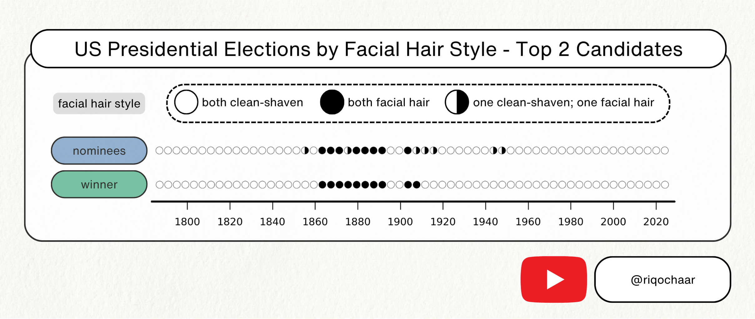 An excerpt from my video, Using Science to Win the White House, where I break down all 60 U.S. presidential elections to uncover what separates the winners from the losers. I analyzed key factors like war, the economy, and voter turnout—and, for a bit of fun, I also looked at facial hair.