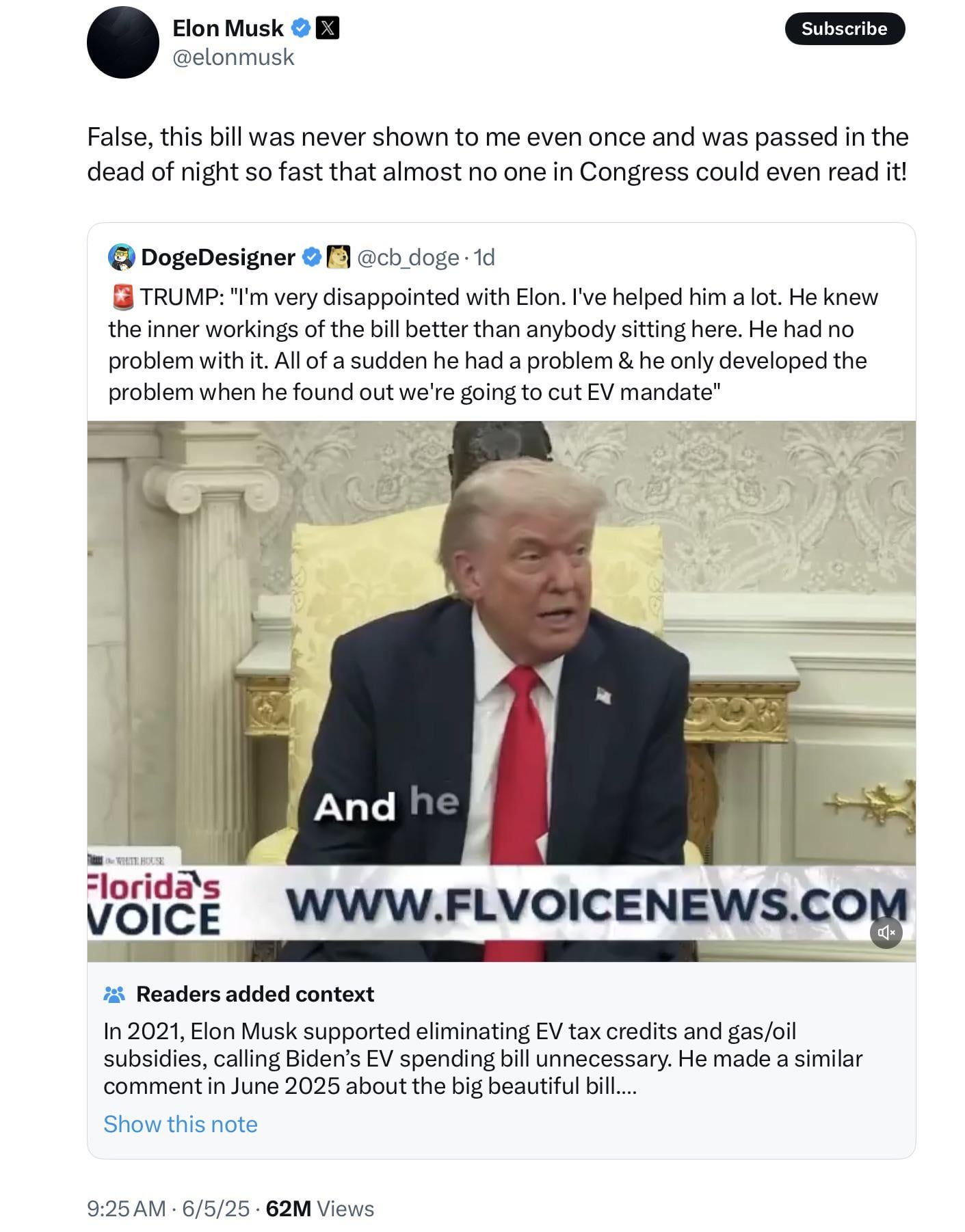 it was obvious that Trump was going to cut the EV mandate. Maybe Musk was hoping that he would make it so only Tesla was spared?