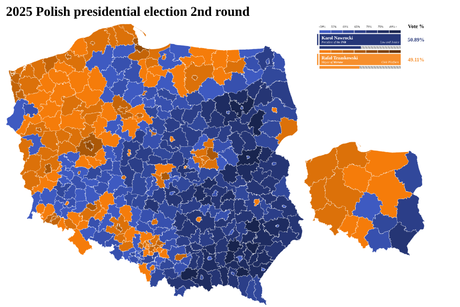 But two hours later, another poll put Nawrocki ahead. After all the votes were counted the following morning, Nawrocki had won by 50.9% to 49.1%.