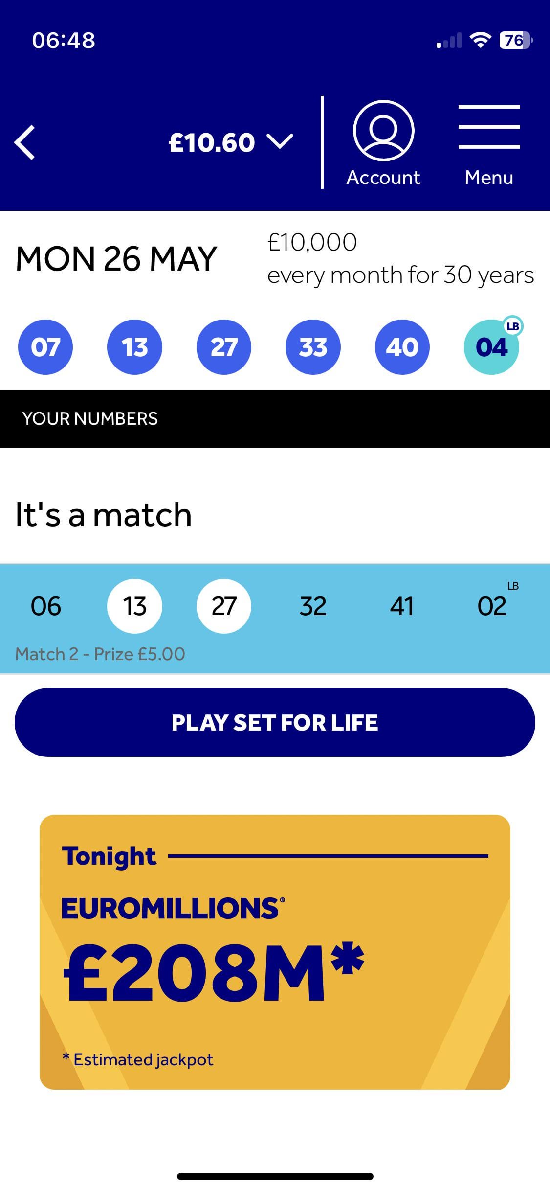 The way I look at it, 20-22.50 a month to possibly have the chance at 8/9 figures on euro millions. Won’t miss the 20. Don’t bother checking unless I get a notification.