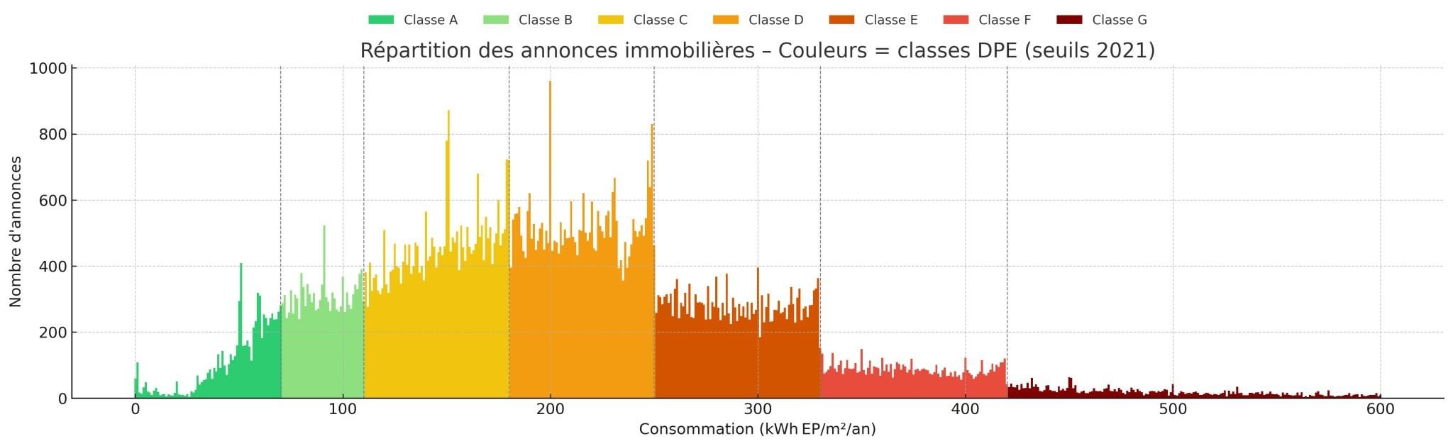 The breakdown of the declared energy consumption of homes for sale in France shows a number of statistical anomalies that point to fraud.